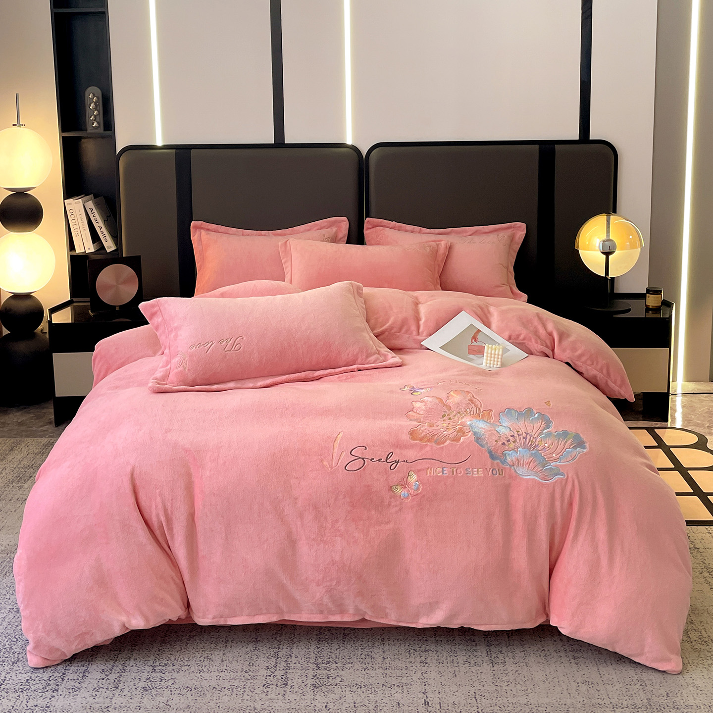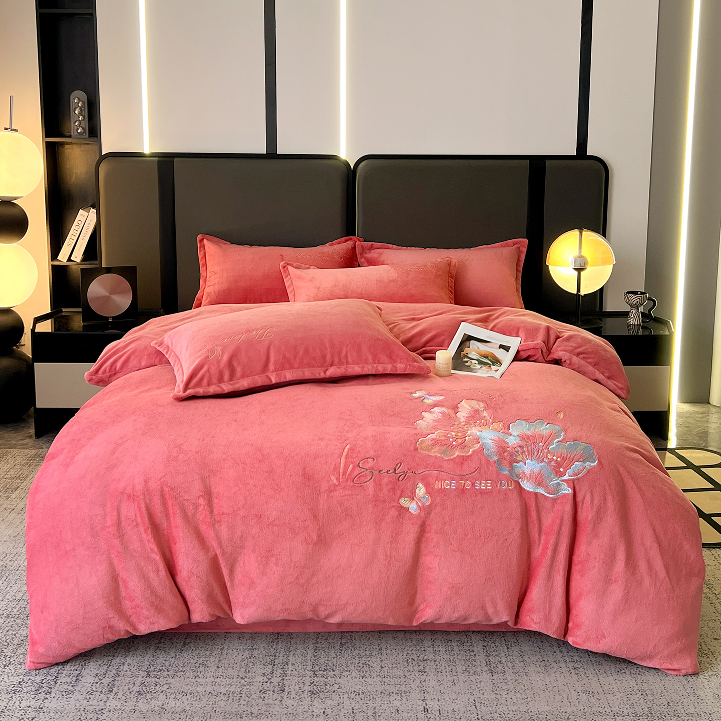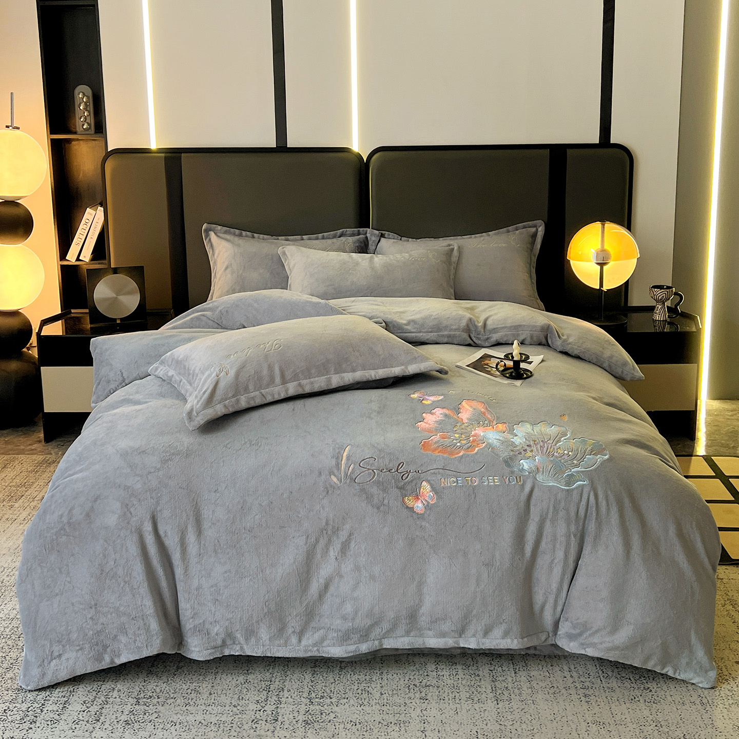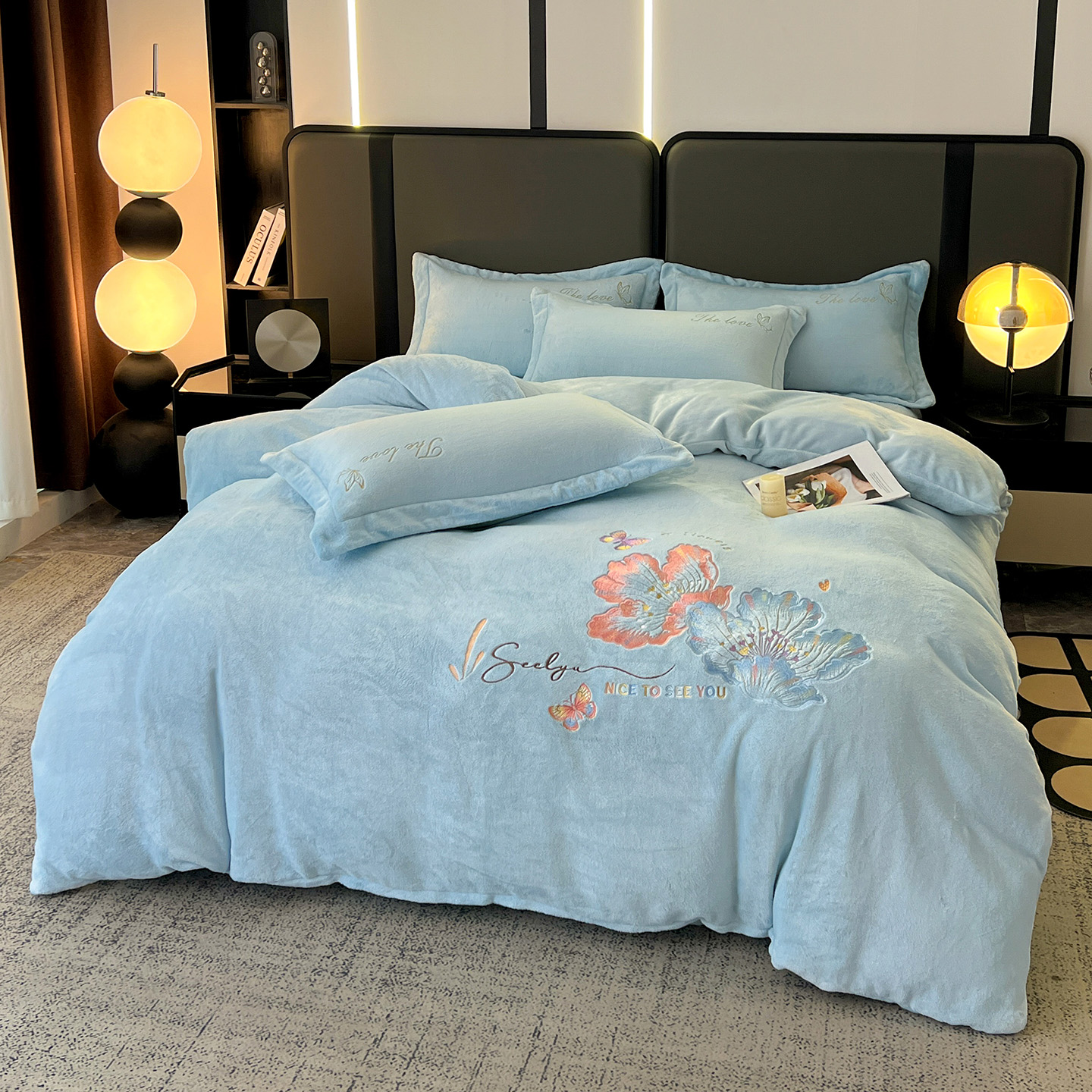 (总)居易简 2025新款亲肤刺绣款牛奶绒四件套-蝶影翩翩