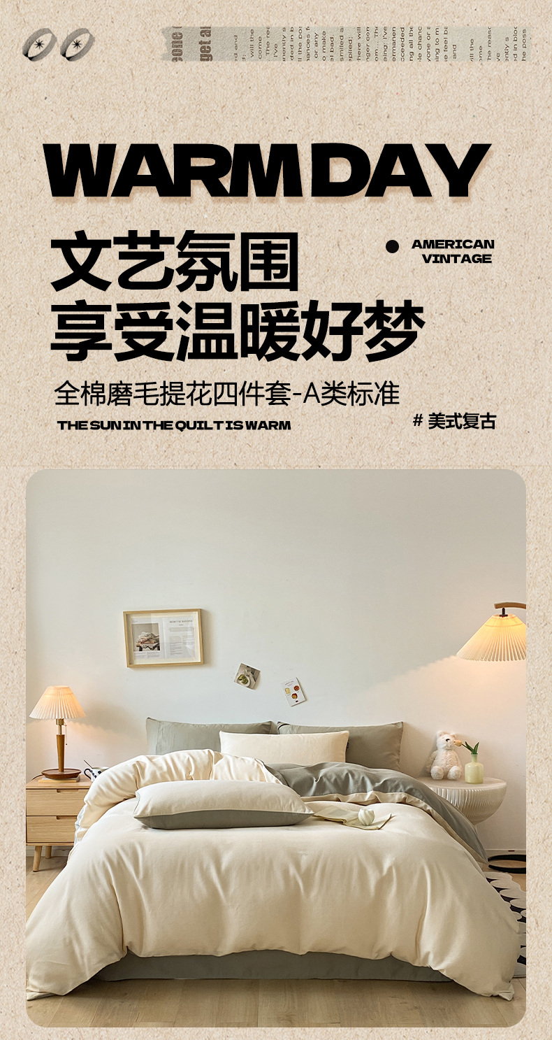 当前位置: 91家纺网 > 商品网购 > 床品套件 > 四件套 > 全棉普通四件套 > 小叮当家纺仓储工厂店 2025新款提供买家秀爆款花型不断货60s水洗提花全棉纯棉磨毛四件套 象牙米