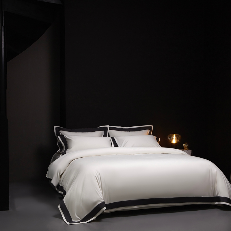 (总)南泉坊 2025新款亲肤舒适全棉纯棉长绒棉双层荷叶边撞色四件套-休斯顿