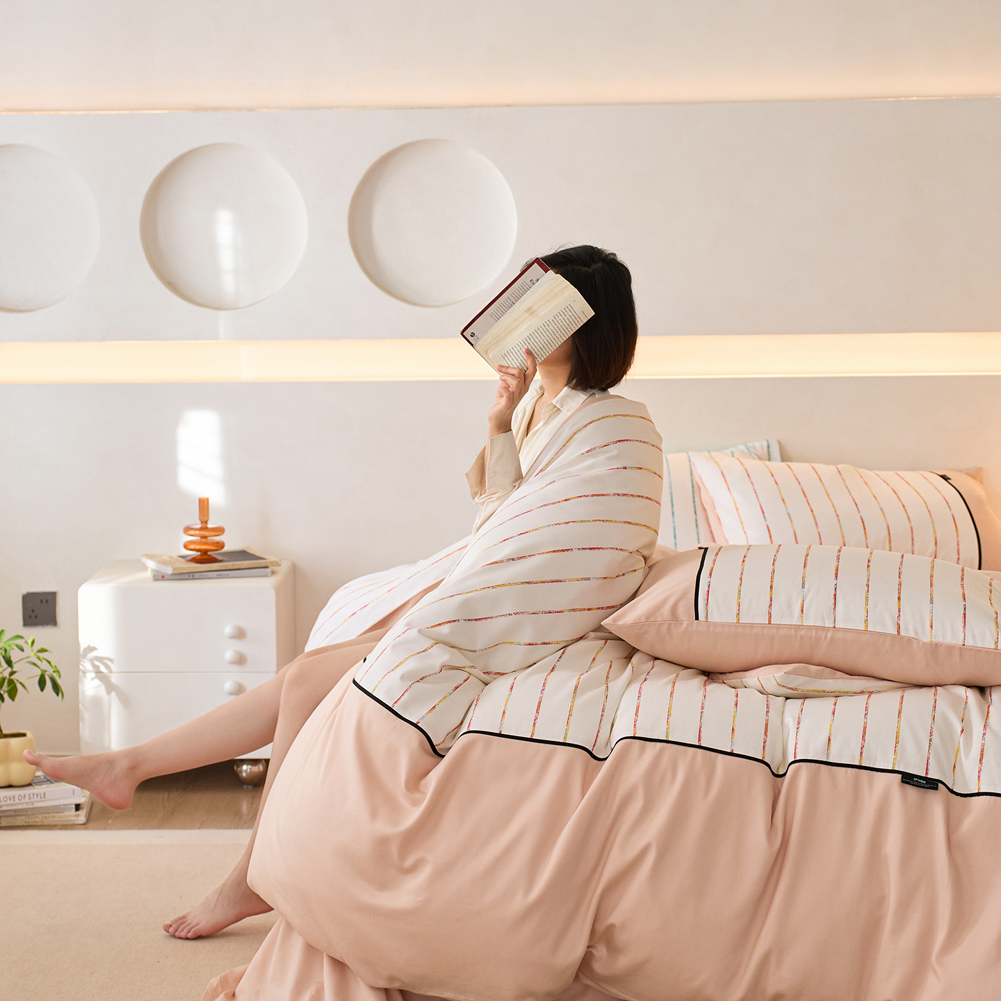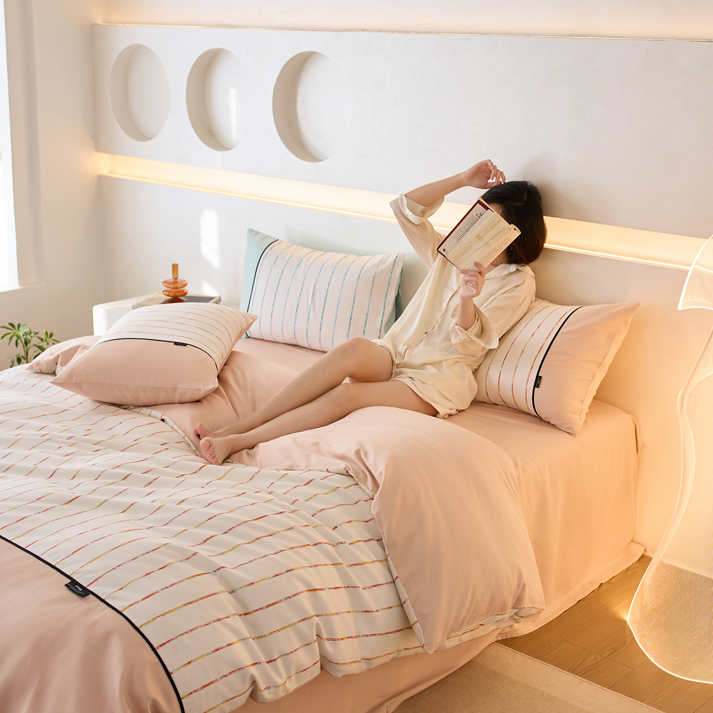 (总)安莱生活 2025新品天丝棉磨毛四件套-暖漾系列(风格二),暖漾-粉,暖漾-蓝