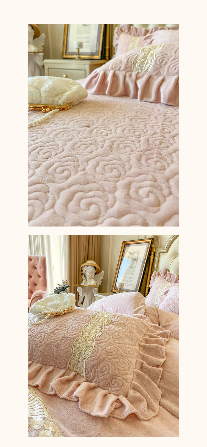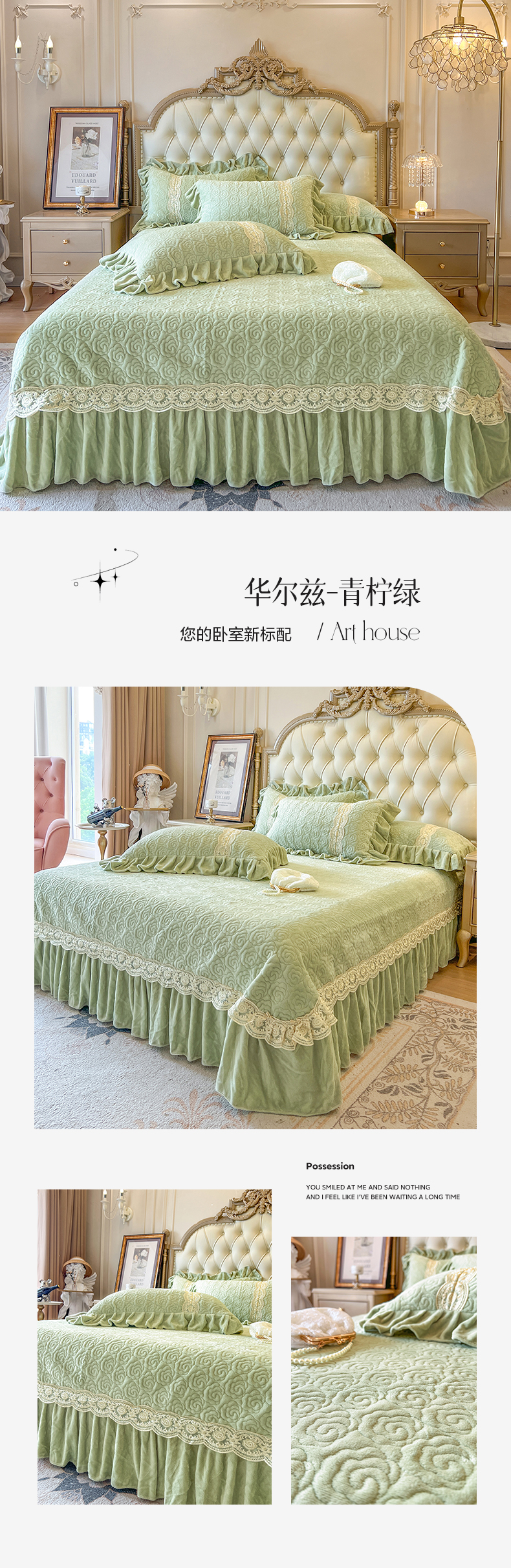 (总)瑞宝 2025新款雕花牛奶绒花边夹棉床盖四件套-莫妮卡,奶昔白,抹茶绿,奶茶咖,少女粉,雾蓝