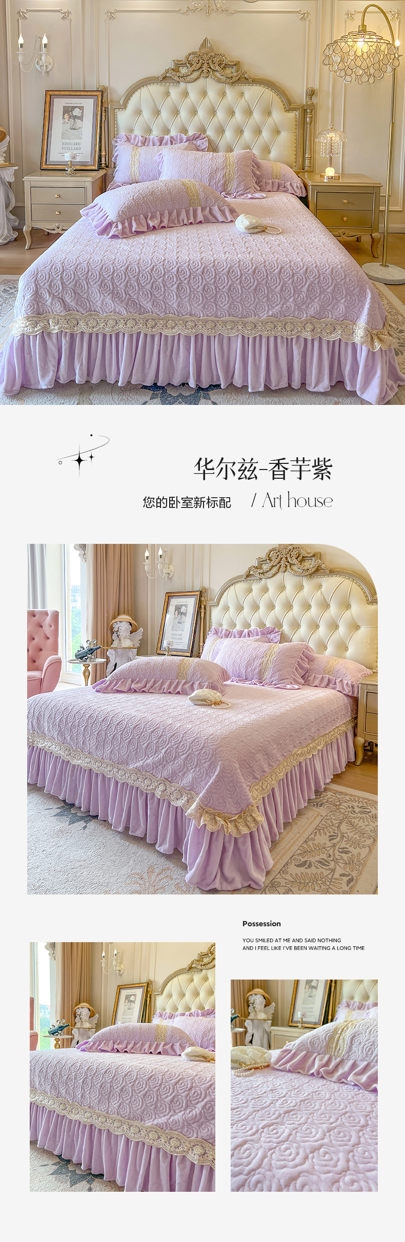 商品名称:瑞宝 2025新款全消光牛奶绒床盖单件床盖单品单床盖床盖三件套-华尔兹 华尔兹-香芋紫