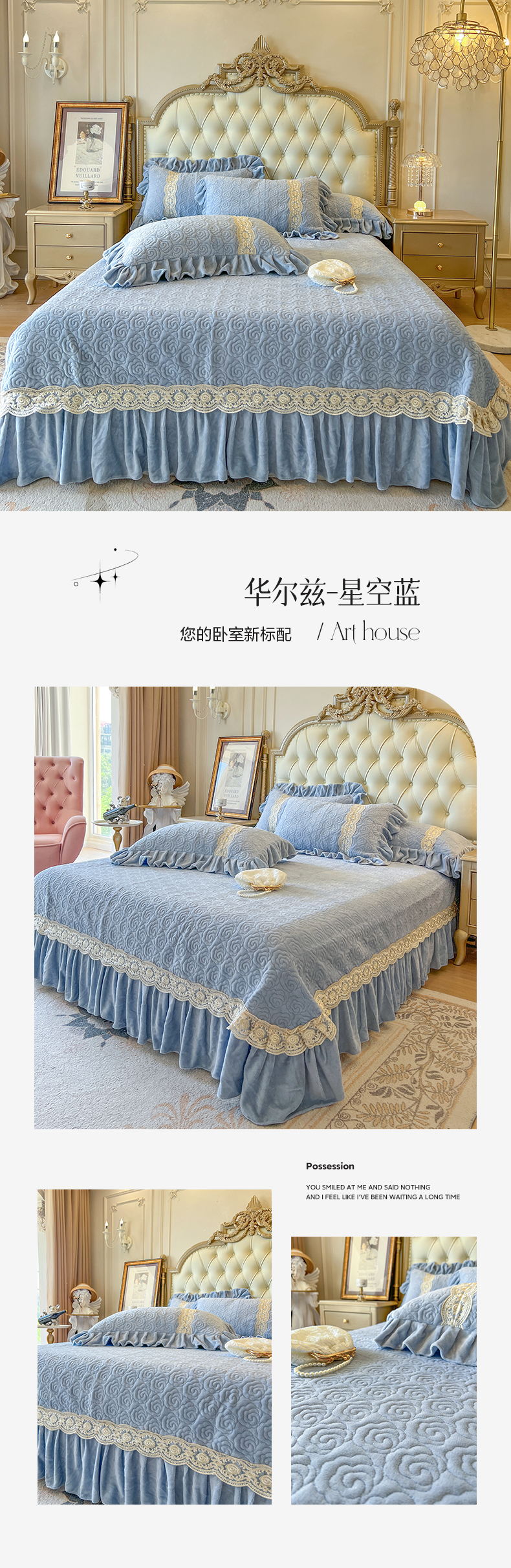 (总)瑞宝 2025新款雕花牛奶绒夹棉床裙四件套-花有约,花有约-粉玉,花有约-卡其,花有约-蔚蓝,花有约-青柠绿,花有约-梦幻紫,花有约-奶油白