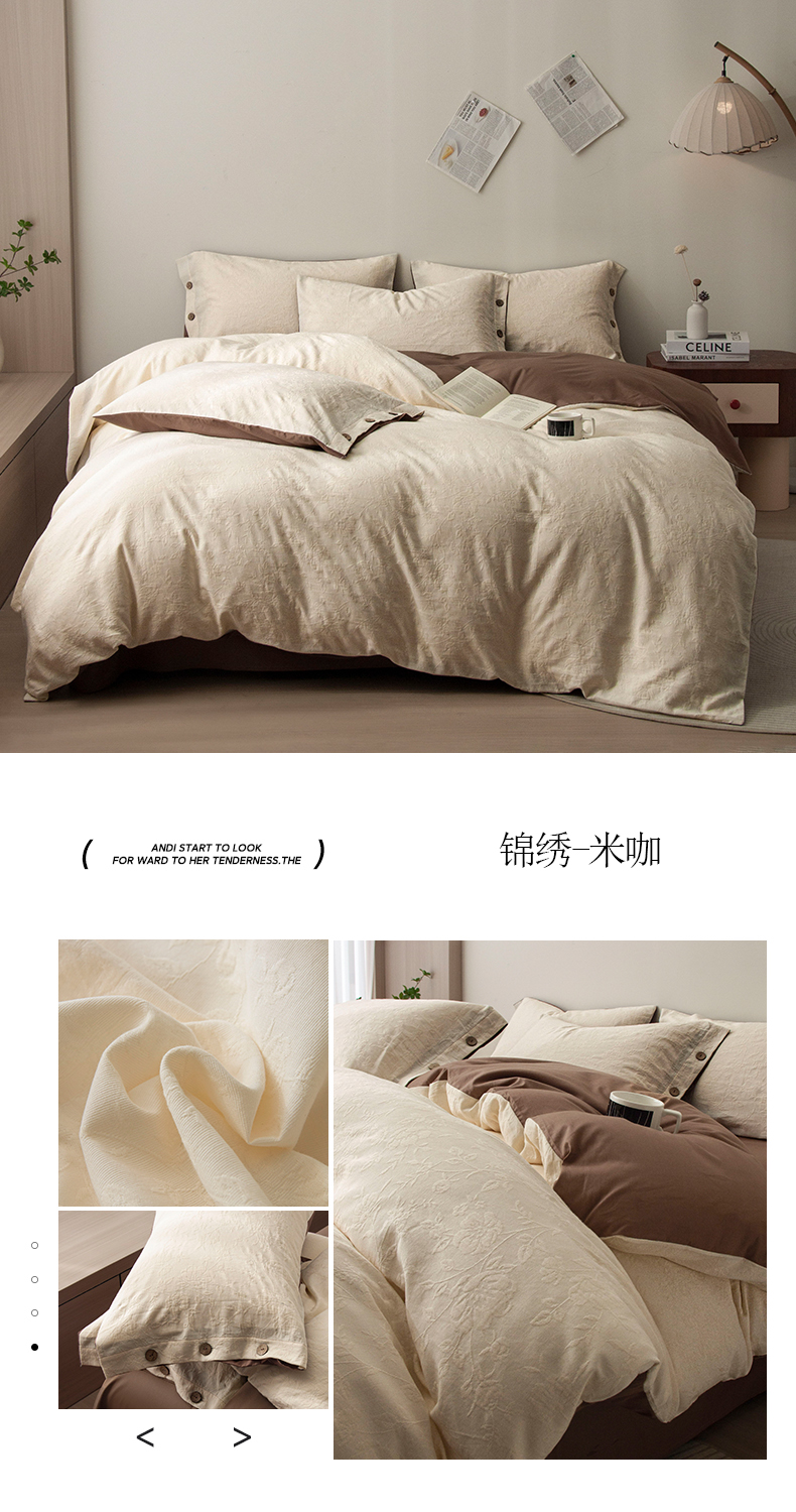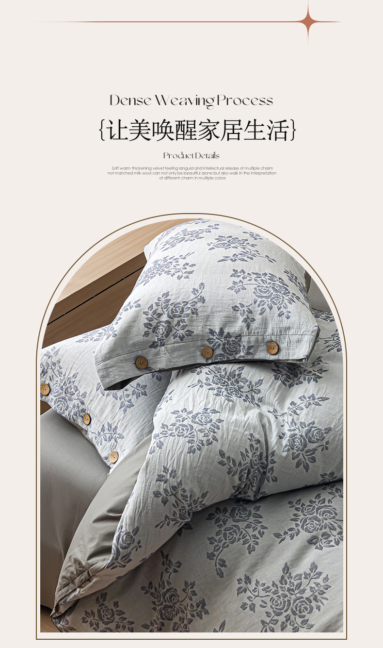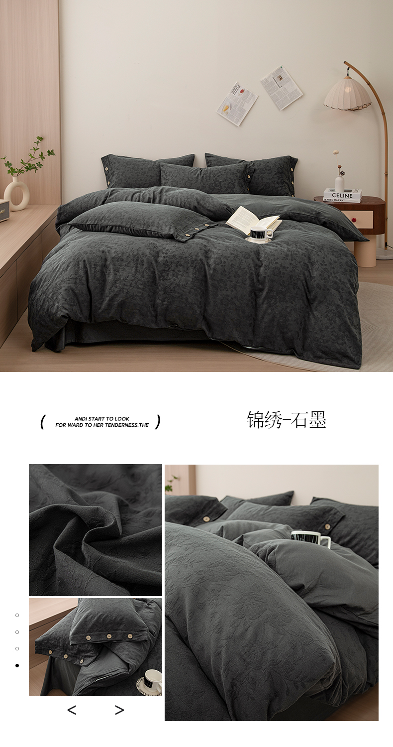 商品名称:(总)女子家纺 2025新款全棉三层水洗提花纽扣四件套