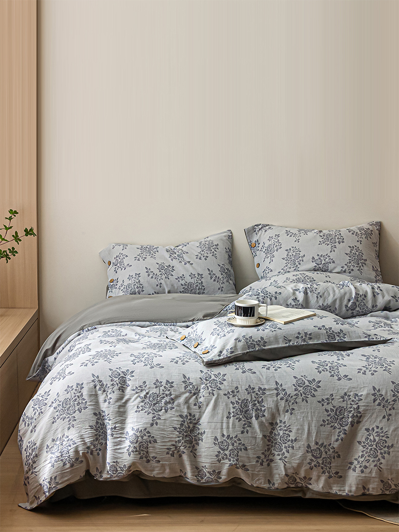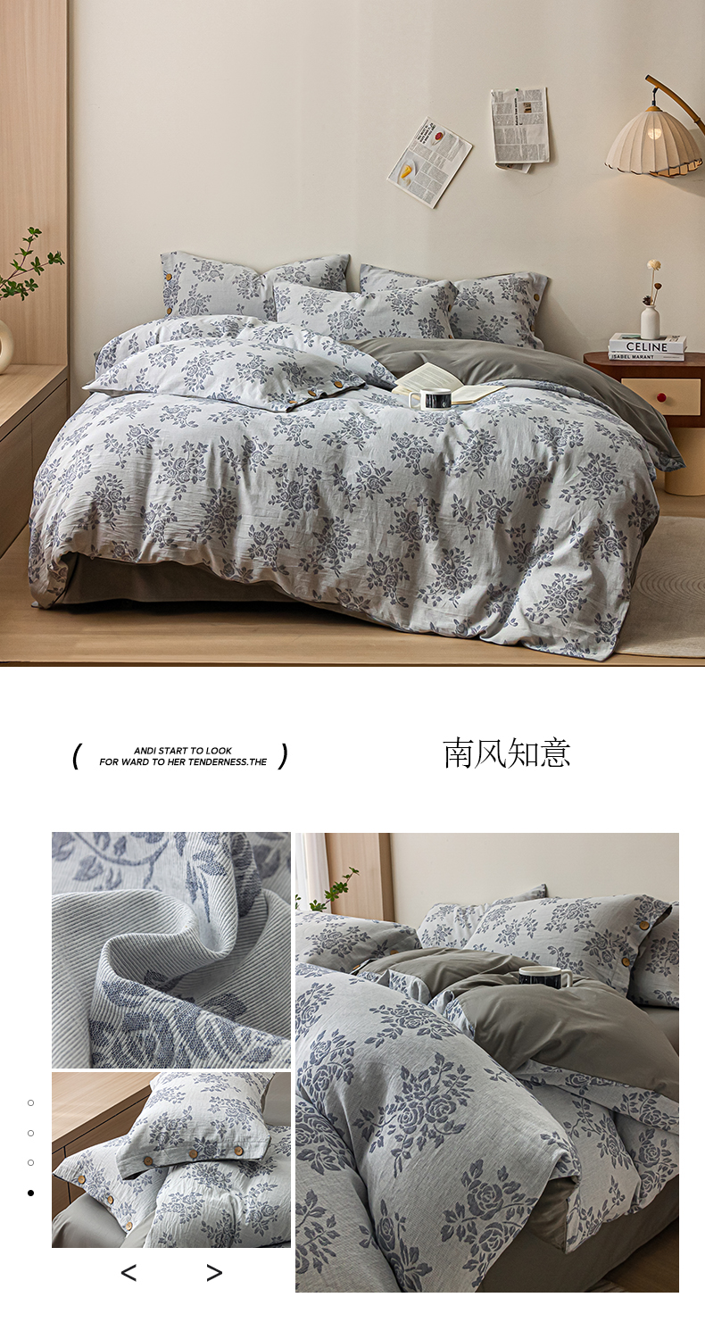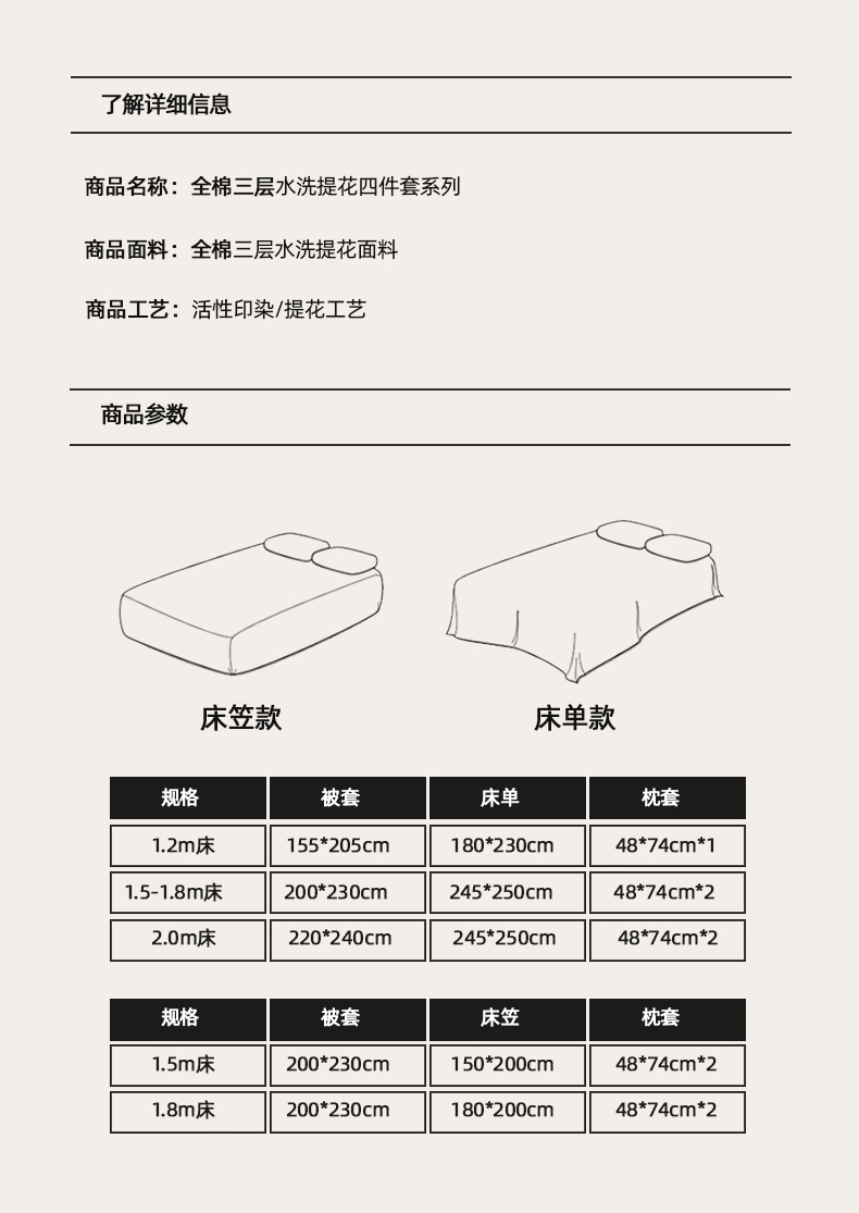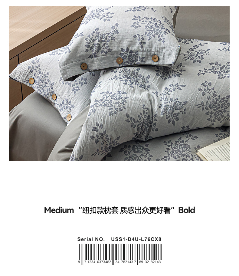 商品名称:(总)女子家纺 2025新款全棉三层水洗提花纽扣四件套