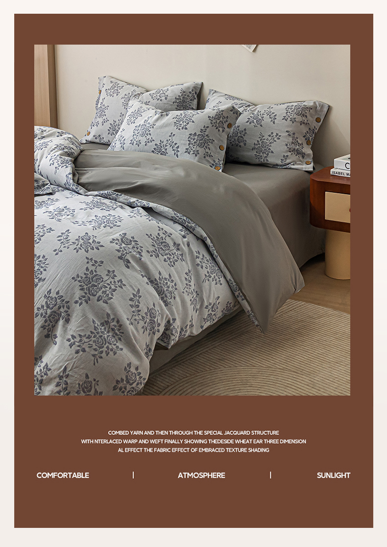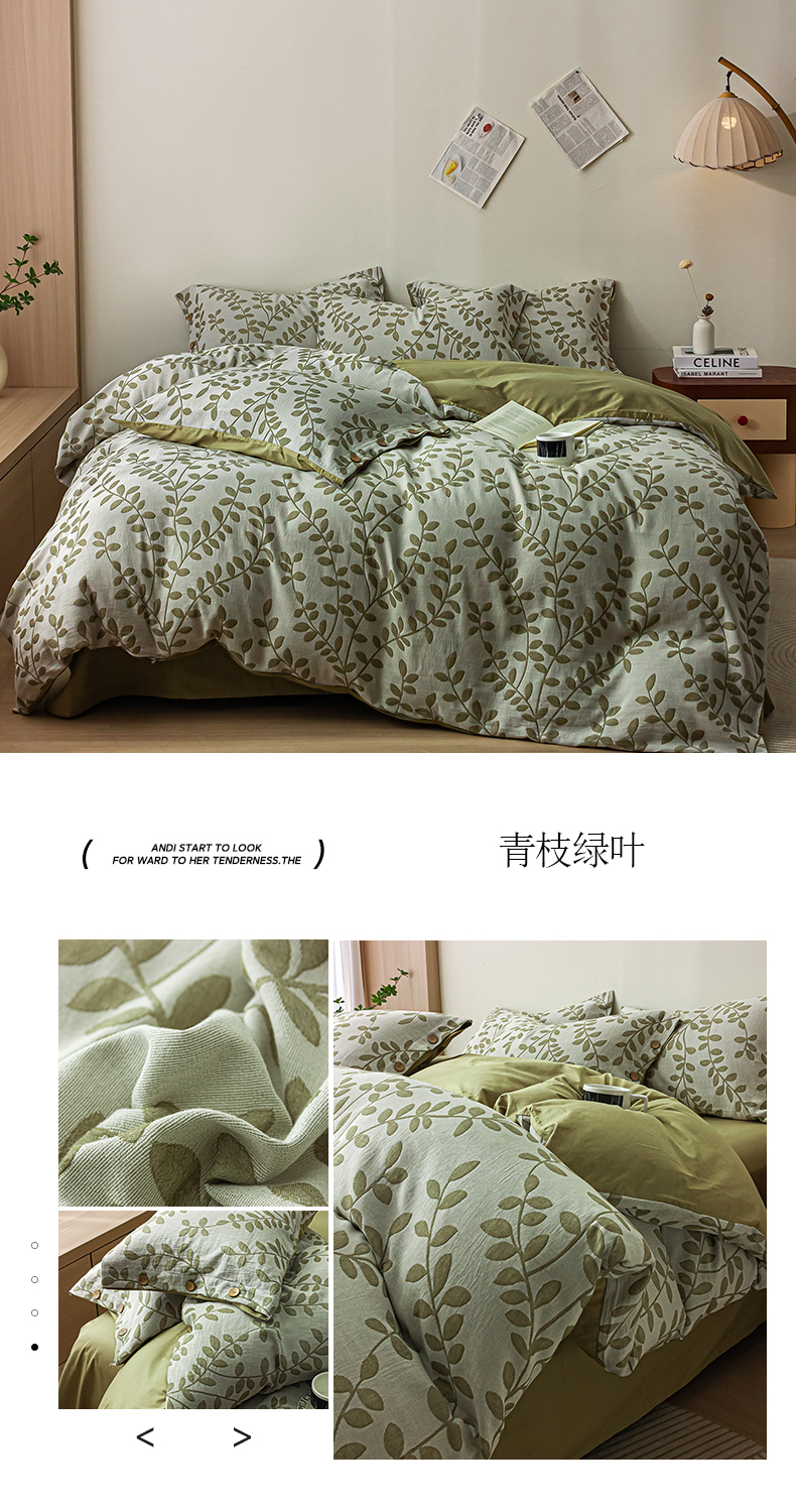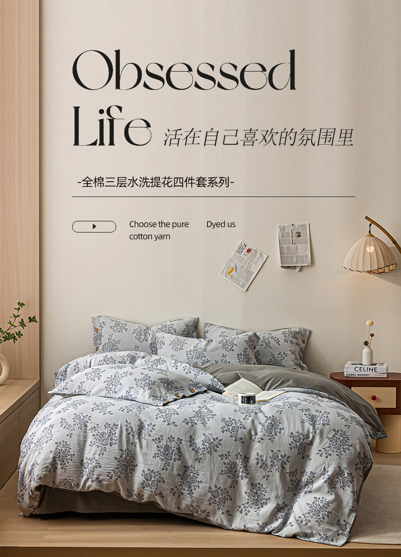 (总)女子家纺 2025新款全棉三层水洗提花纽扣四件套