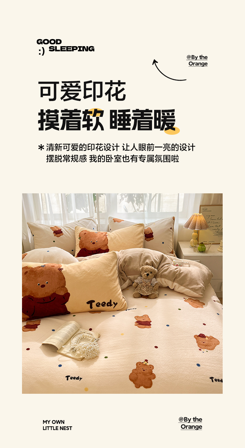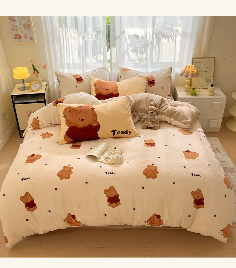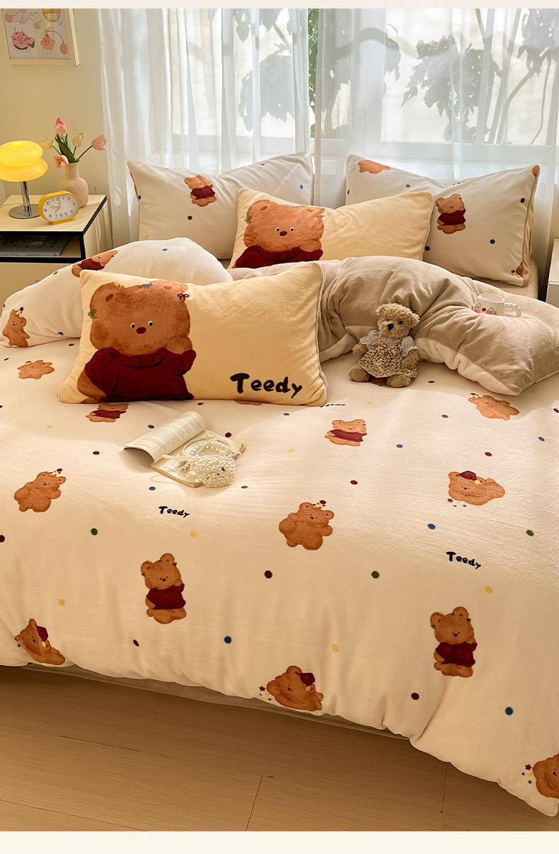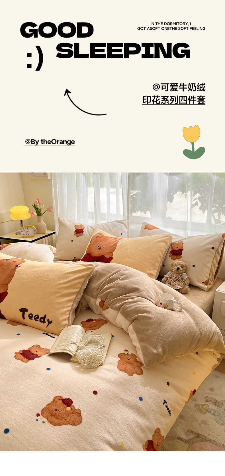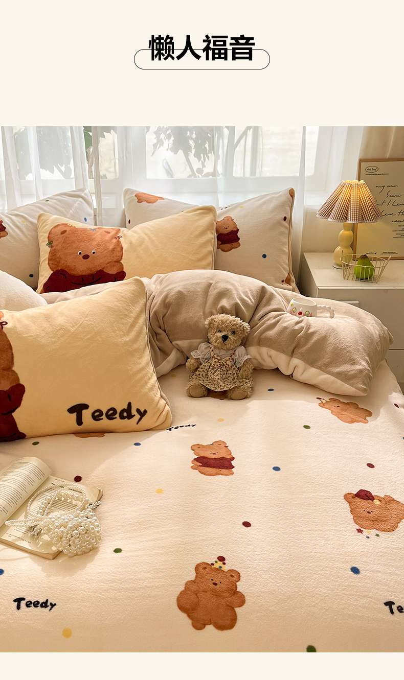 如一 2025新款高克重卡通印花牛奶绒四件套第三批 泰迪熊