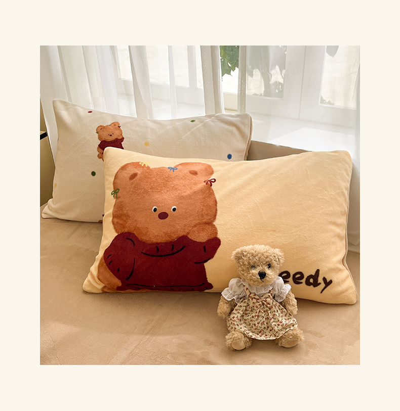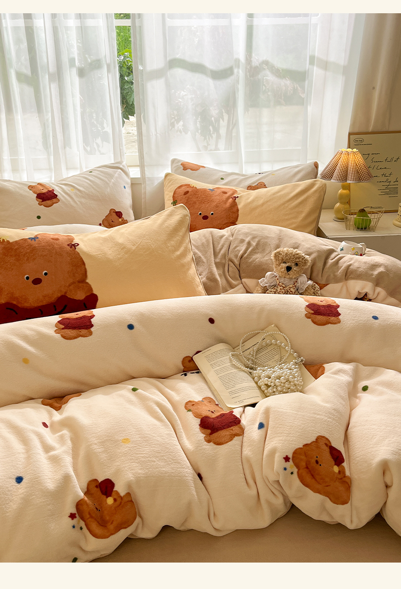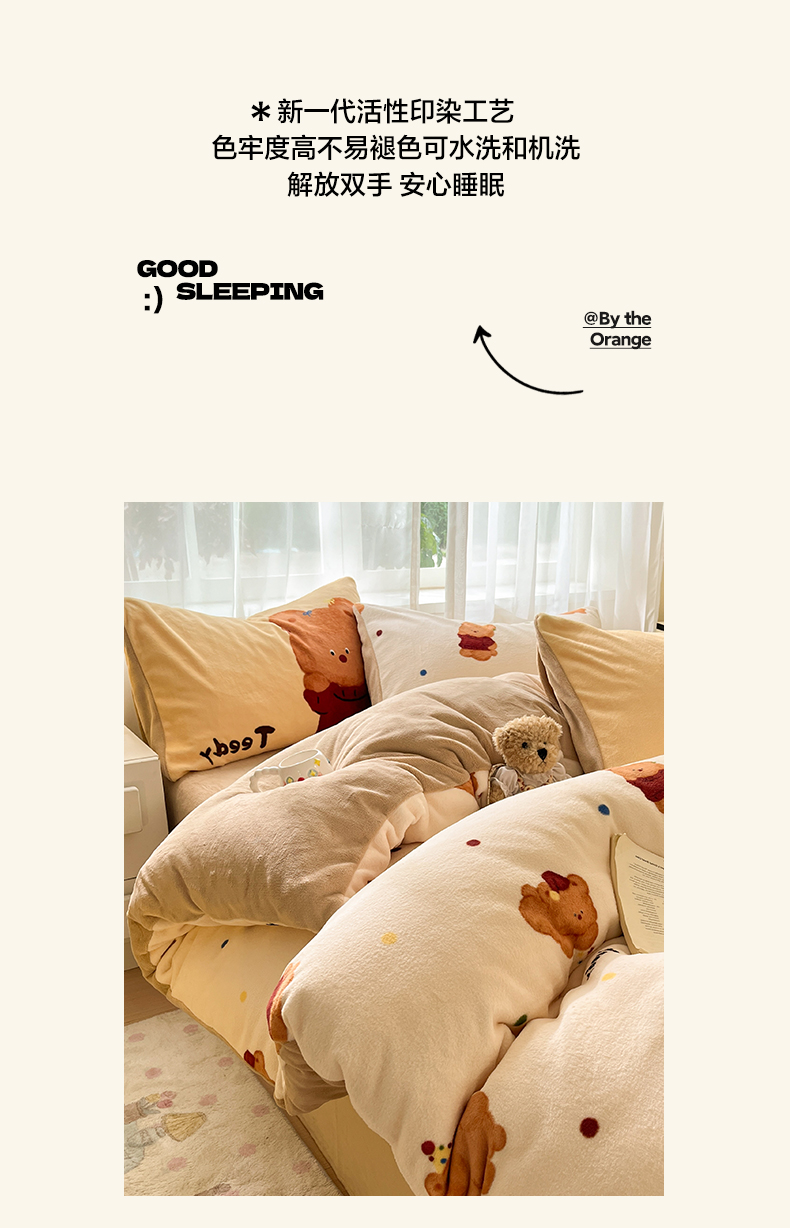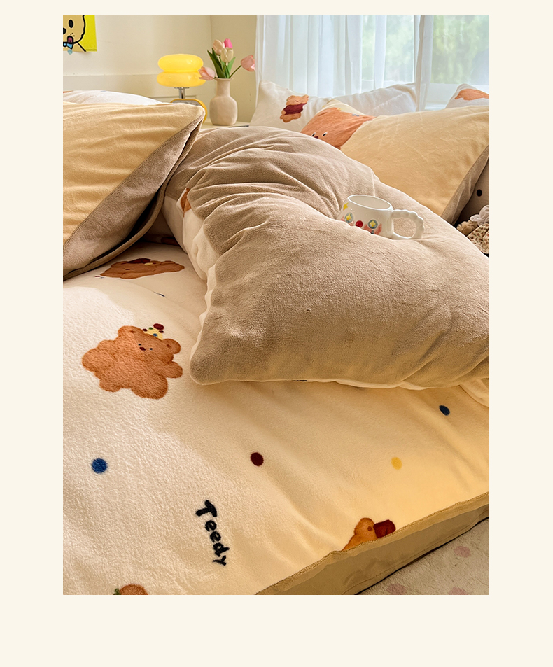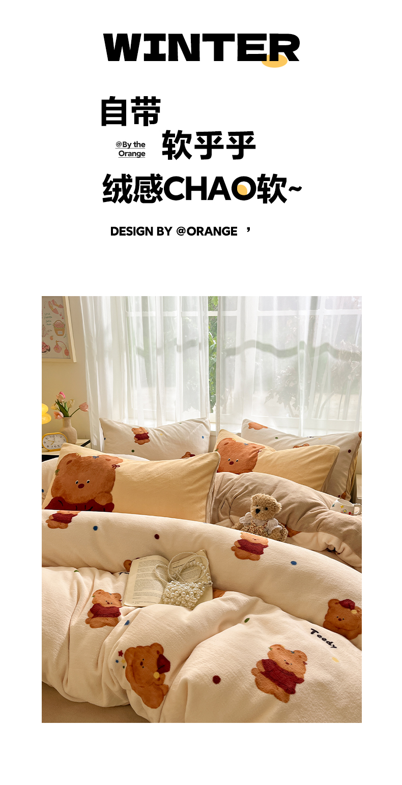 如一 2025新款高克重卡通印花牛奶绒四件套第三批 泰迪熊