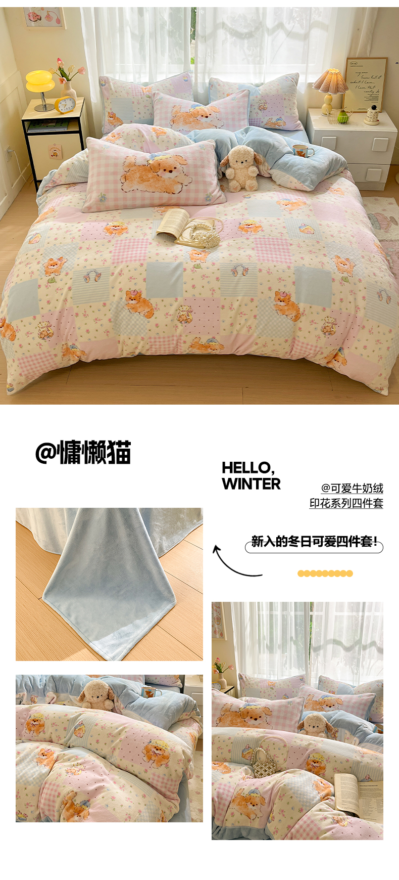 (总)如一 2025新款高克重大版数码印花牛奶绒四件套,毛毛狗,猫咪酱,俏皮狗,色彩猫,小熊仔,熊猫咖,游乐园,粉伙伴,拉兔咖,萌宠黄,萌宠绿,萌派对,围巾狗,线条狗,小粉喵,小花喵,小伙伴