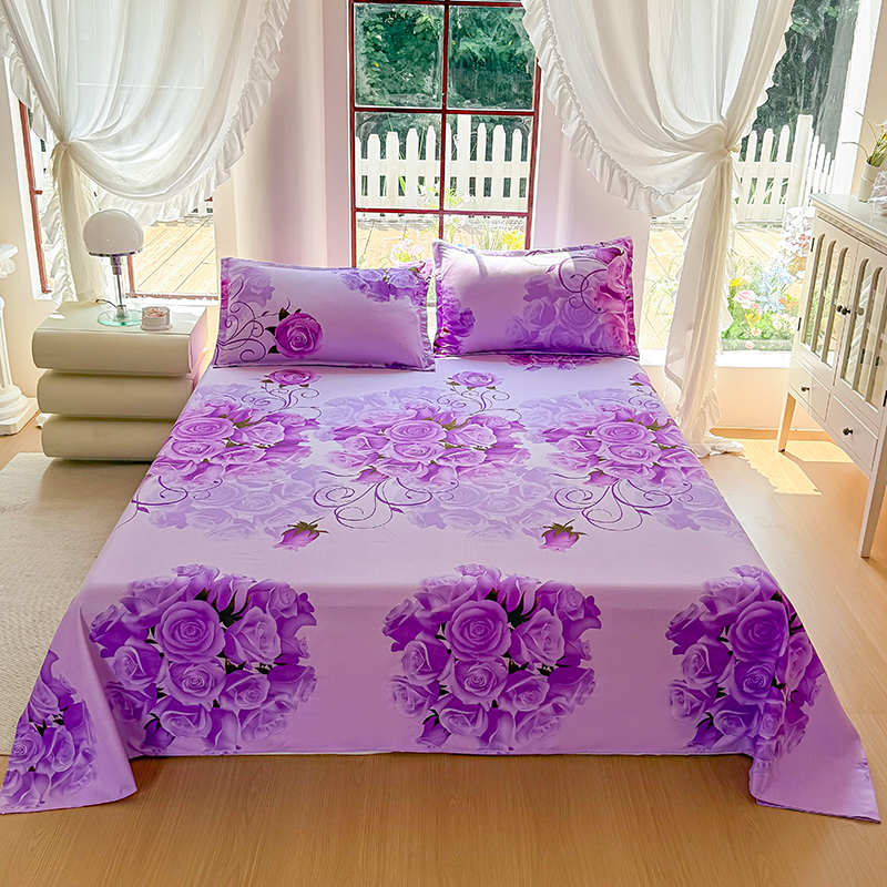 梵巢家纺 2025新款加厚芦荟棉床单磨毛化纤床单 紫气东来