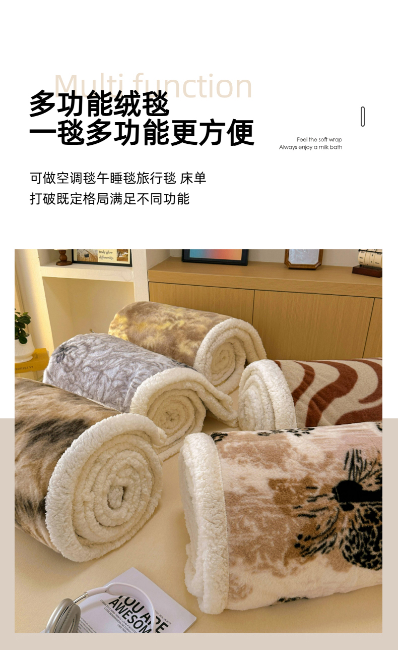 商品名称:春光里 2025新款兔毛羊羔绒收包边毛毯 琥珀