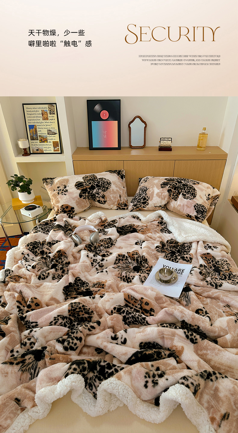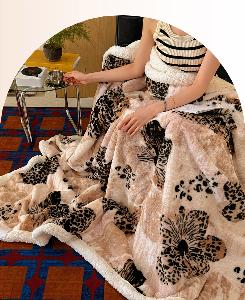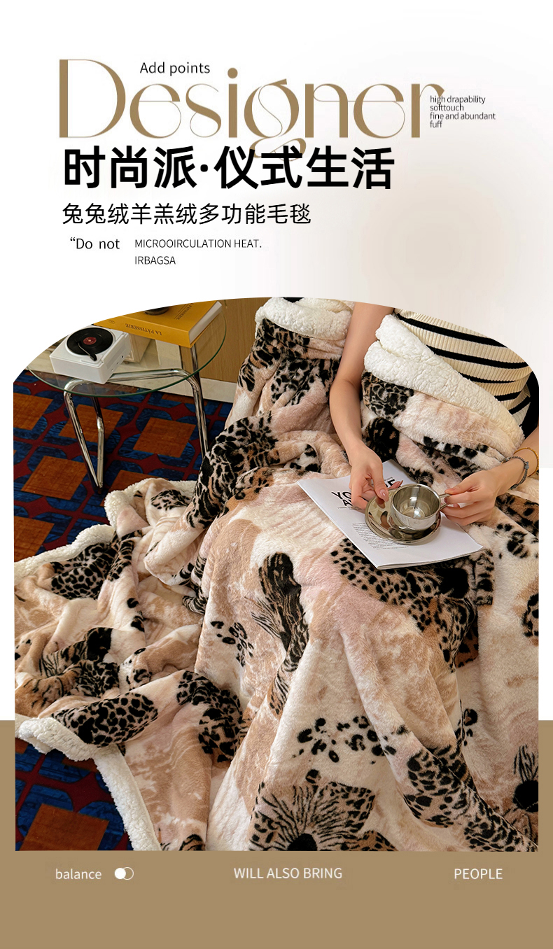 春光里 2025新款兔毛羊羔绒收包边毛毯 琥珀