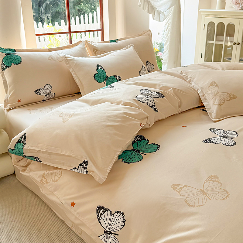 当前位置: 91家纺网 > 商品网购 > 床品套件 > 四件套 > 化纤普通四件套 > 梵巢家纺 芦荟棉三四件套,床单,被套,枕套化纤四件套 蝶舞飞扬