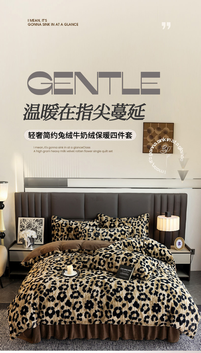 当前位置: 91家纺网 > 商品网购 > 床品套件 > 四件套 > 牛奶绒四件套 > 提花大世界 2025新款轻奢法式加厚美拉德系列高克重兔绒牛奶绒床盖床单床笠款四件套 蝶豹-灰