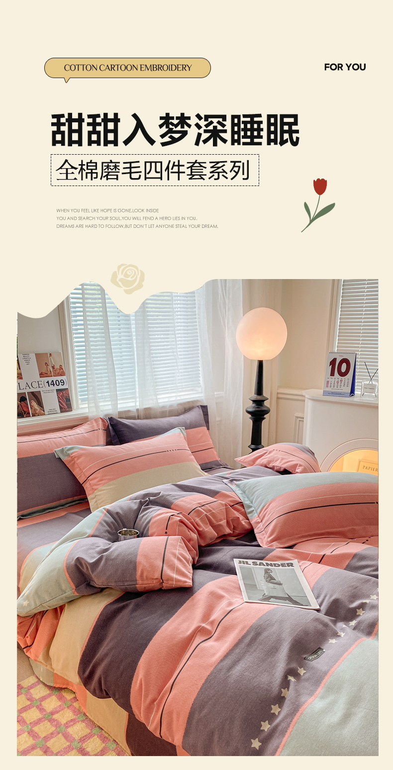 当前位置: 91家纺网 > 商品网购 > 床品套件 > 四件套 > 全棉普通四件套 > 小叮当家纺仓储工厂店 2025新款(买家秀 不断货)A类全棉纯棉磨毛四件套 条纹星星-粉