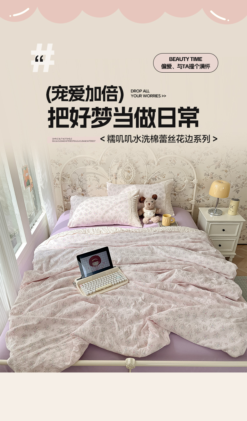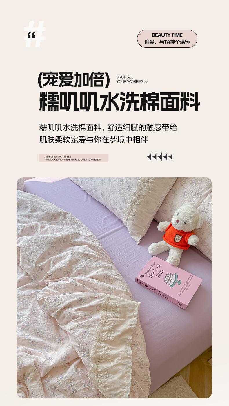 当前位置: 91家纺网 > 商品网购 > 床品套件 > 四件套 > 澜妃 2025新款糯叽叽水洗棉全棉蕾丝花边-艾意系列 艾意-半路月亮