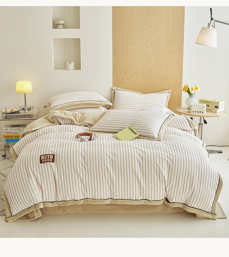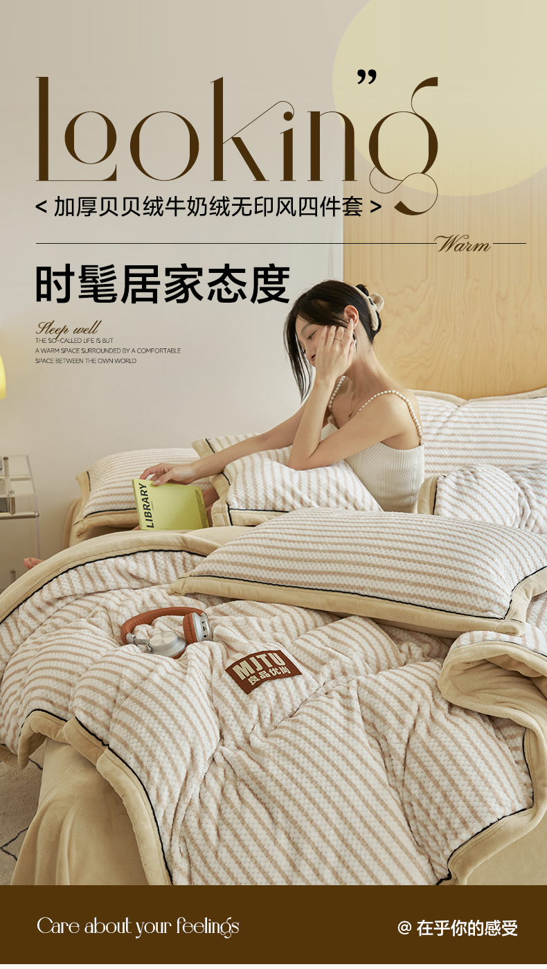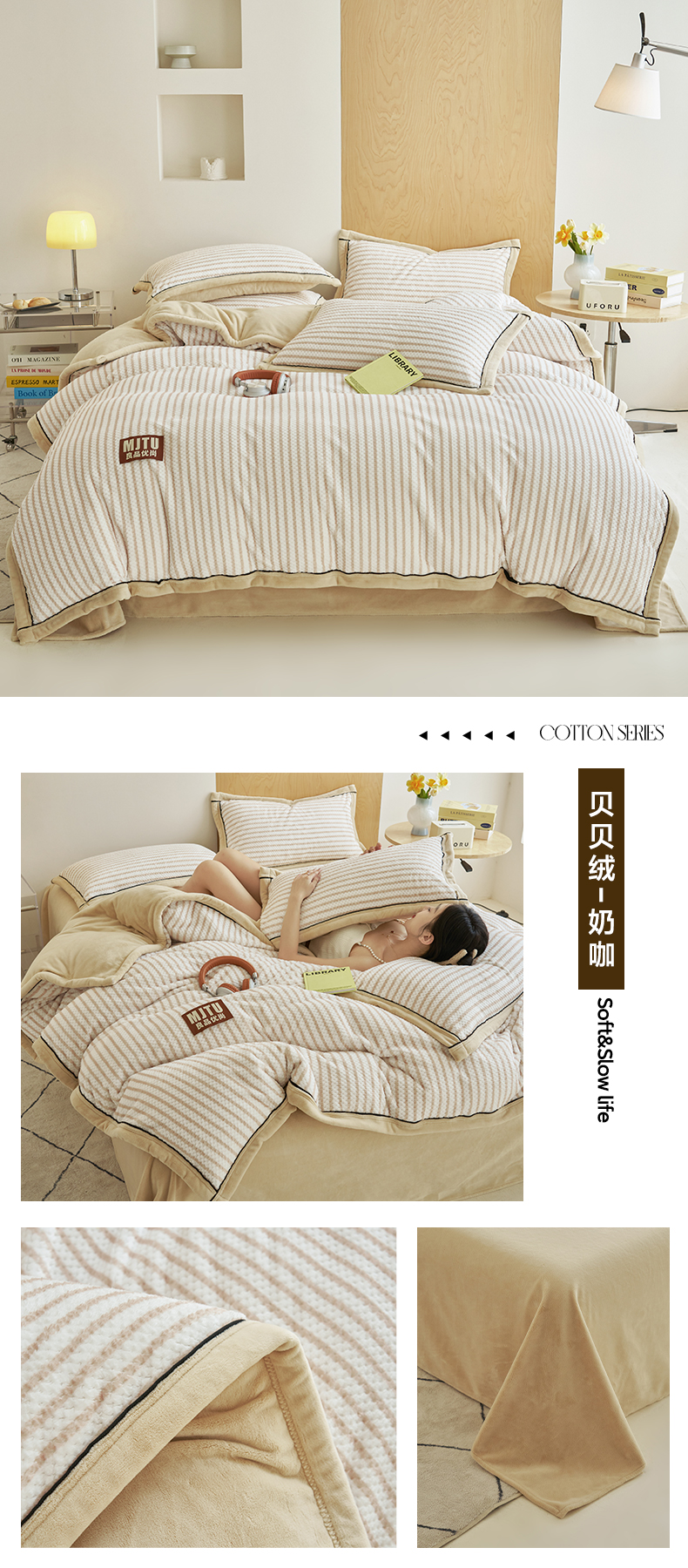 当前位置: 91家纺网 > 商品网购 > 床品套件 > 四件套 > 牛奶绒四件套 > 晨曦家纺 2025新款加厚高克重230克贝贝绒牛奶绒四件套无印风菠萝格 贝贝绒-奶咖