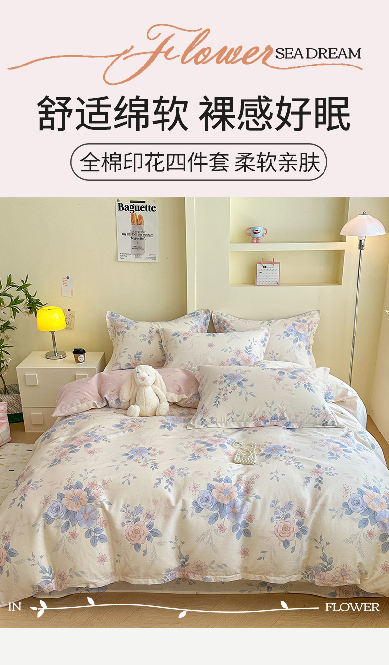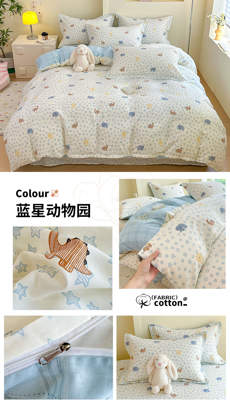 当前位置: 91家纺网 > 商品网购 > 床品套件 > 四件套 > 全棉普通四件套 > 绵庭家纺 2025新款田园花卉全棉纯棉印花四件套 蓝星动物园