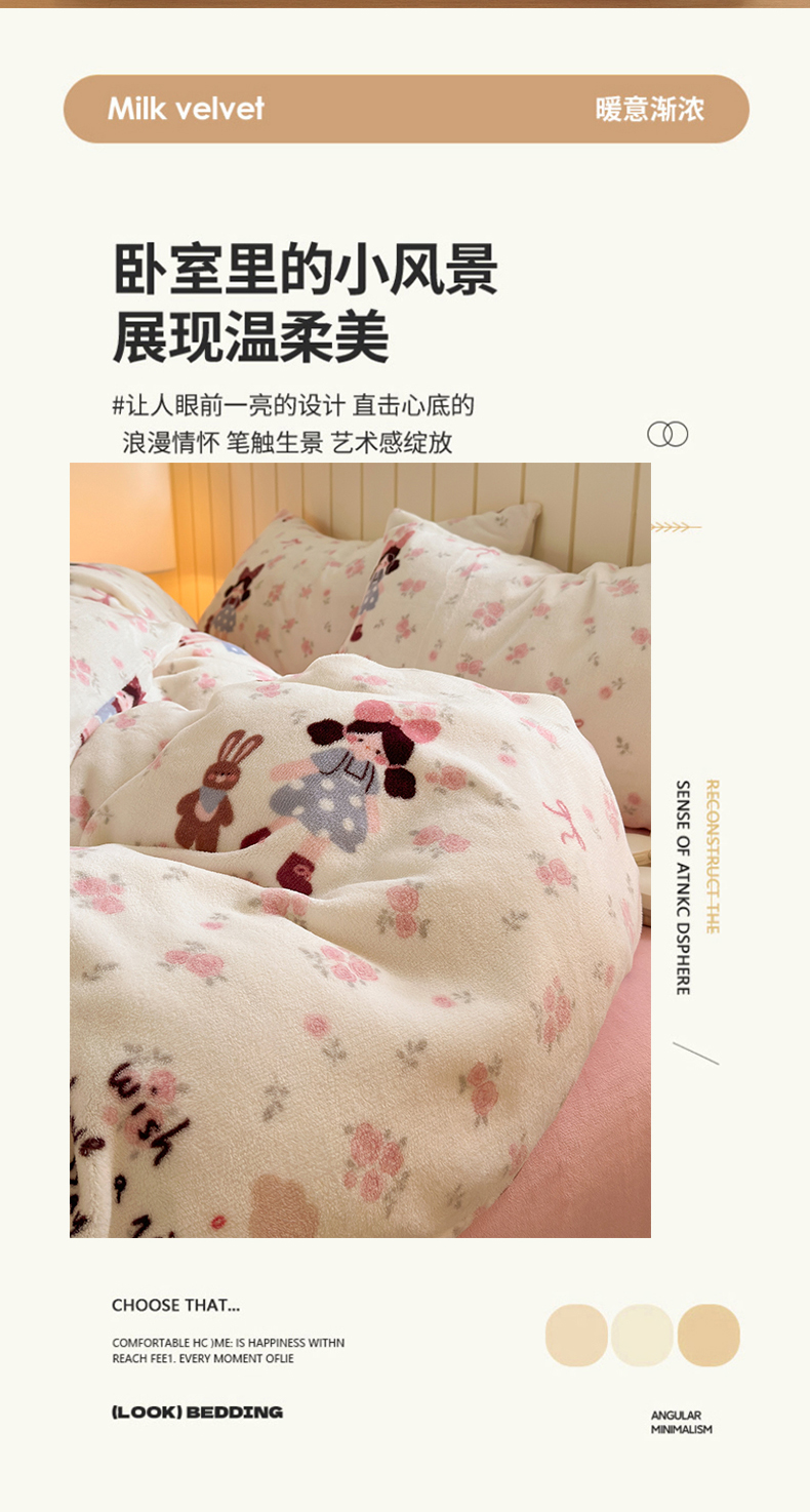 当前位置: 91家纺网 > 商品网购 > 床品套件 > 四件套 > 牛奶绒四件套 > 丽美人家纺 2025新款小版印花牛奶绒四件套 玫瑰女孩