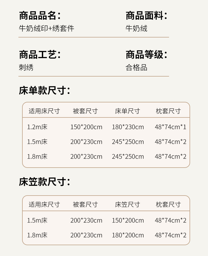 商品名称:优悦生活馆 2025新款牛奶绒卡通印花刺绣四件套系列 格子熊-咖