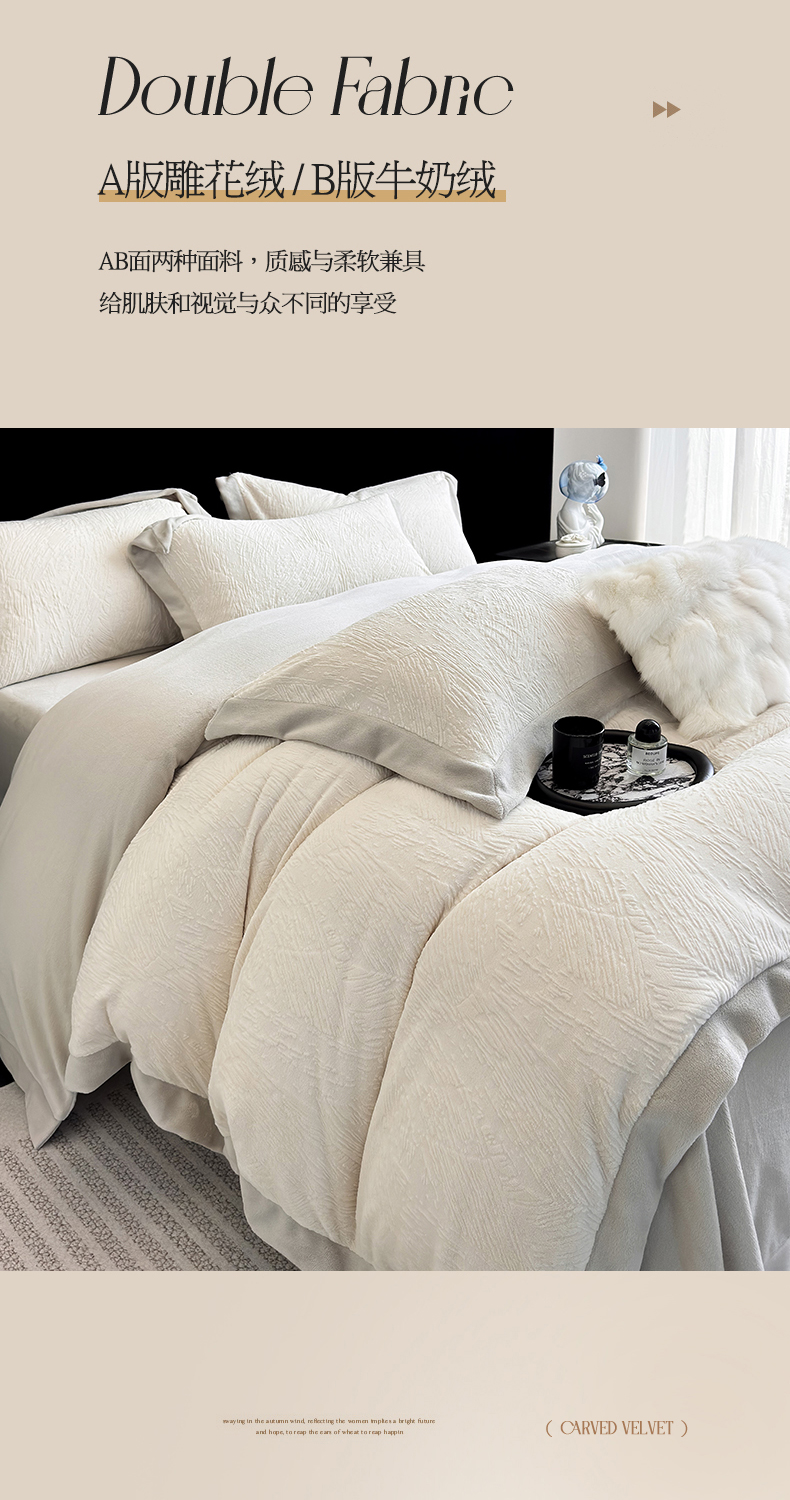 2025新款高克重230克雕花绒纹理牛奶绒四件套秋冬轻奢拼角系列四件套-柏林晚风系列 柏林晚风-浅米