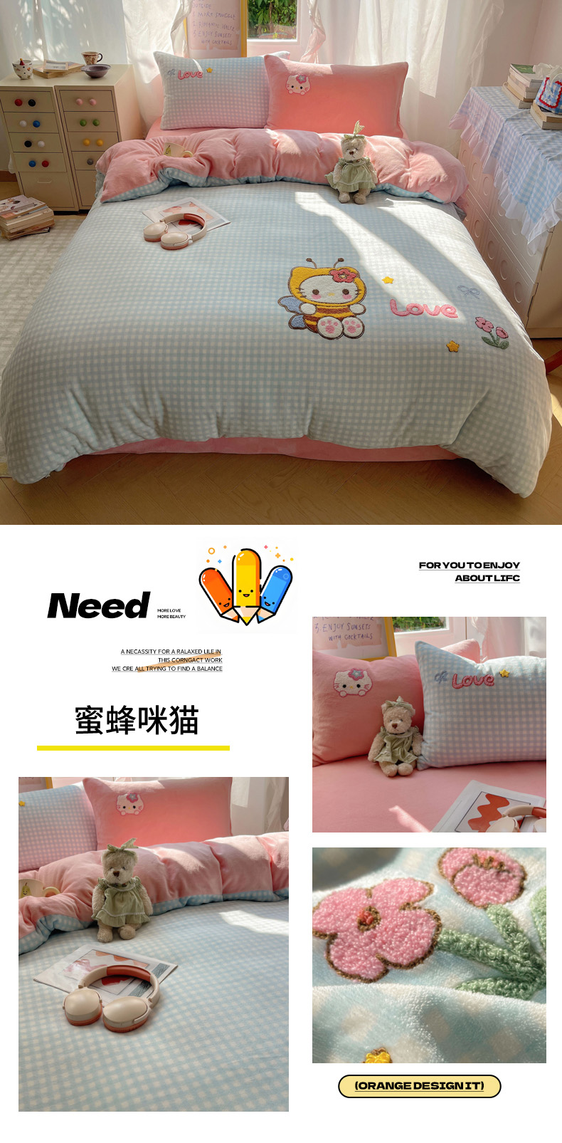 当前位置: 91家纺网 > 商品网购 > 床品套件 > 四件套 > 牛奶绒四件套 > 雨帆家纺 2025新款亲肤舒适可爱卡通牛奶绒毛巾绣四件套 蜜蜂咪猫