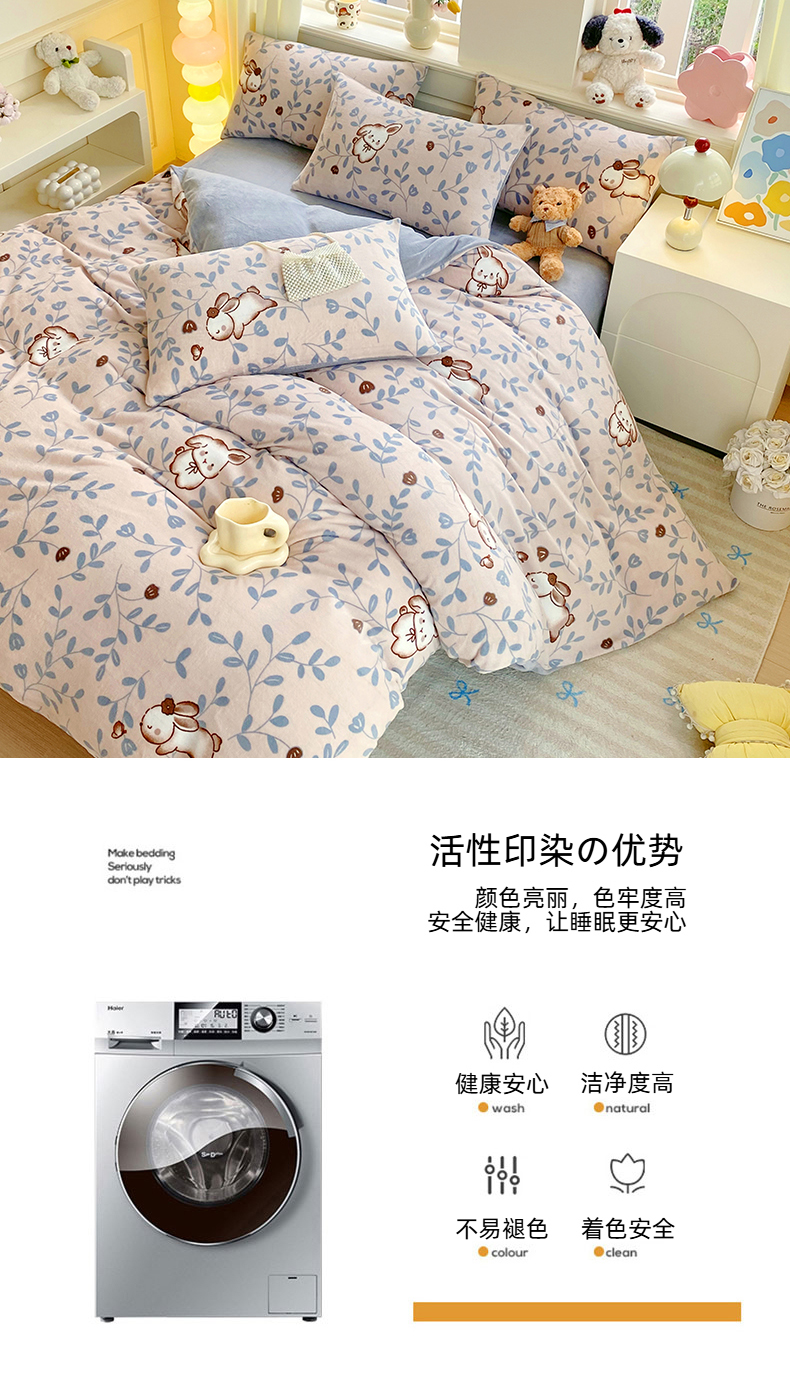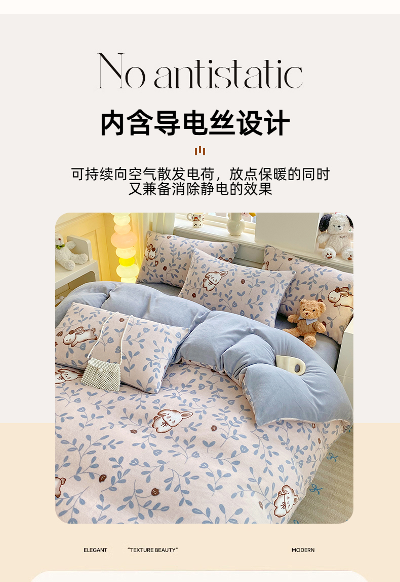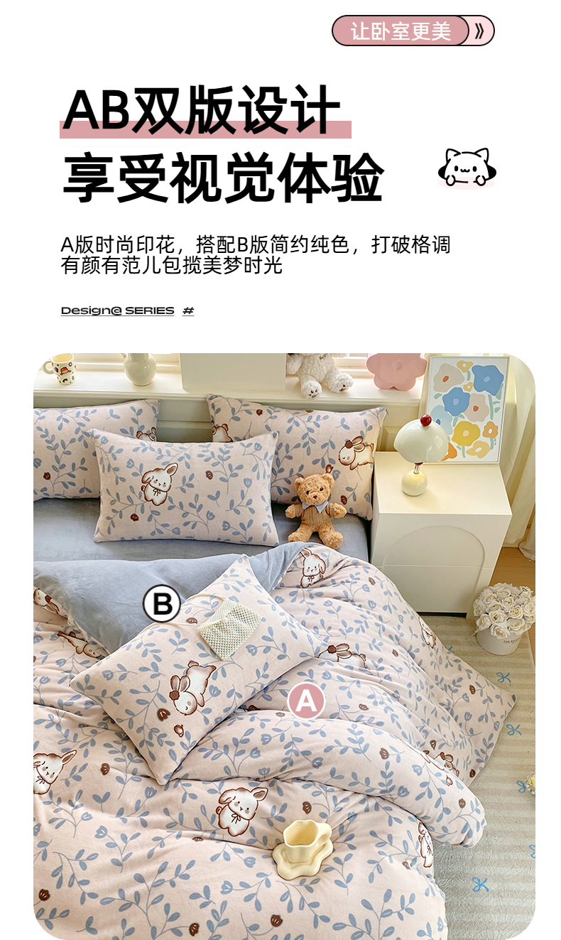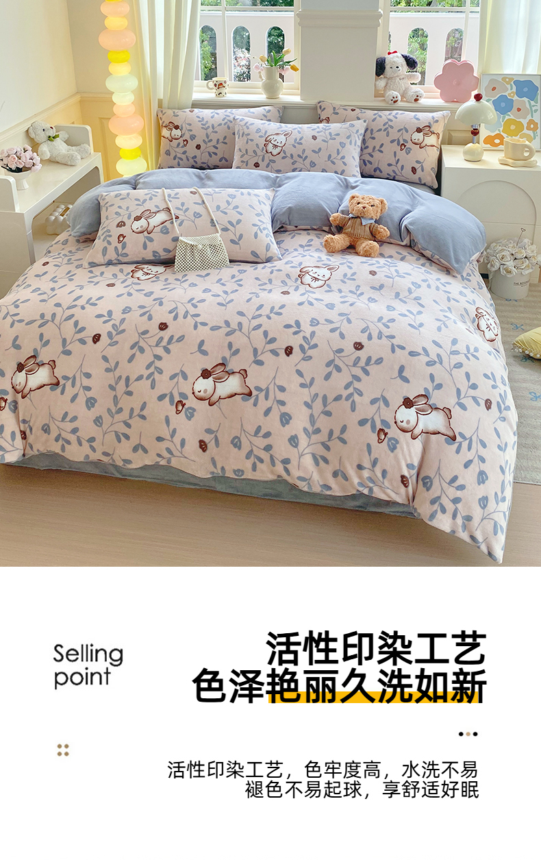 当前位置: 91家纺网 > 商品网购 > 床品套件 > 四件套 > 牛奶绒四件套 > 悦织湾家纺 2025新款高克重牛奶绒印花四件套床单床笠轻奢时尚床上用品三四件套被套 叶子萌兔