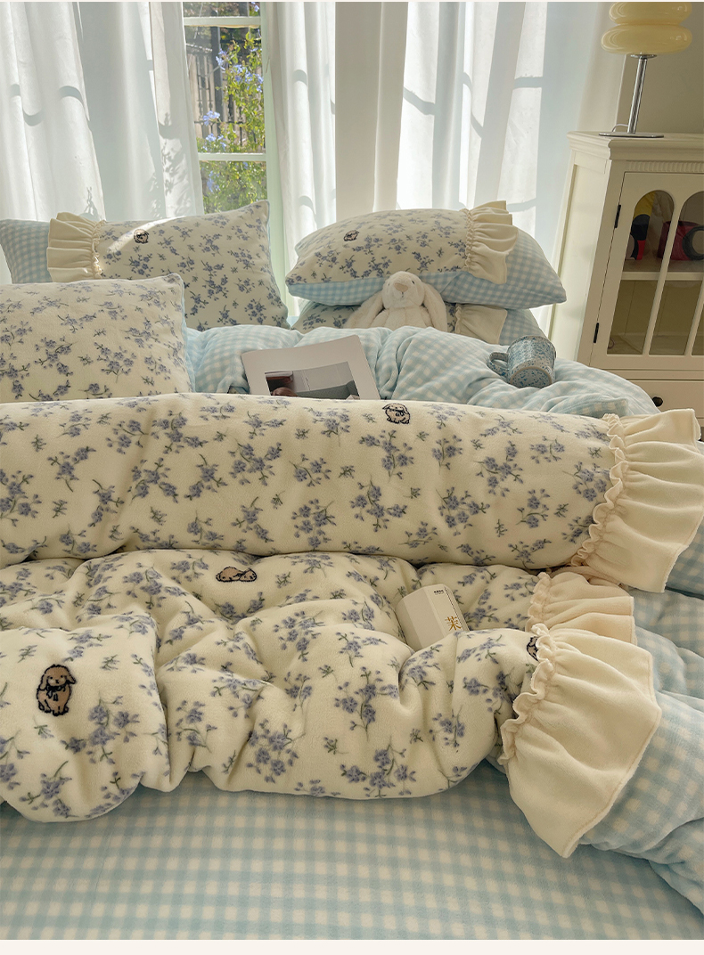 瑞莱 2025冬季创意花边A类牛奶绒四件套套件 粉蝴蝶结