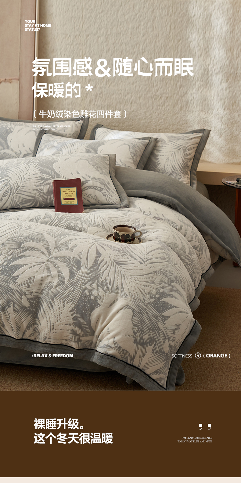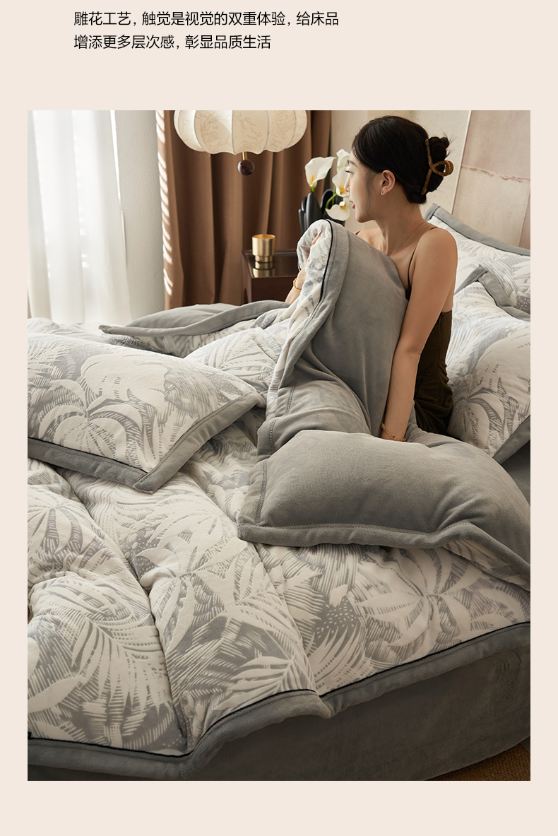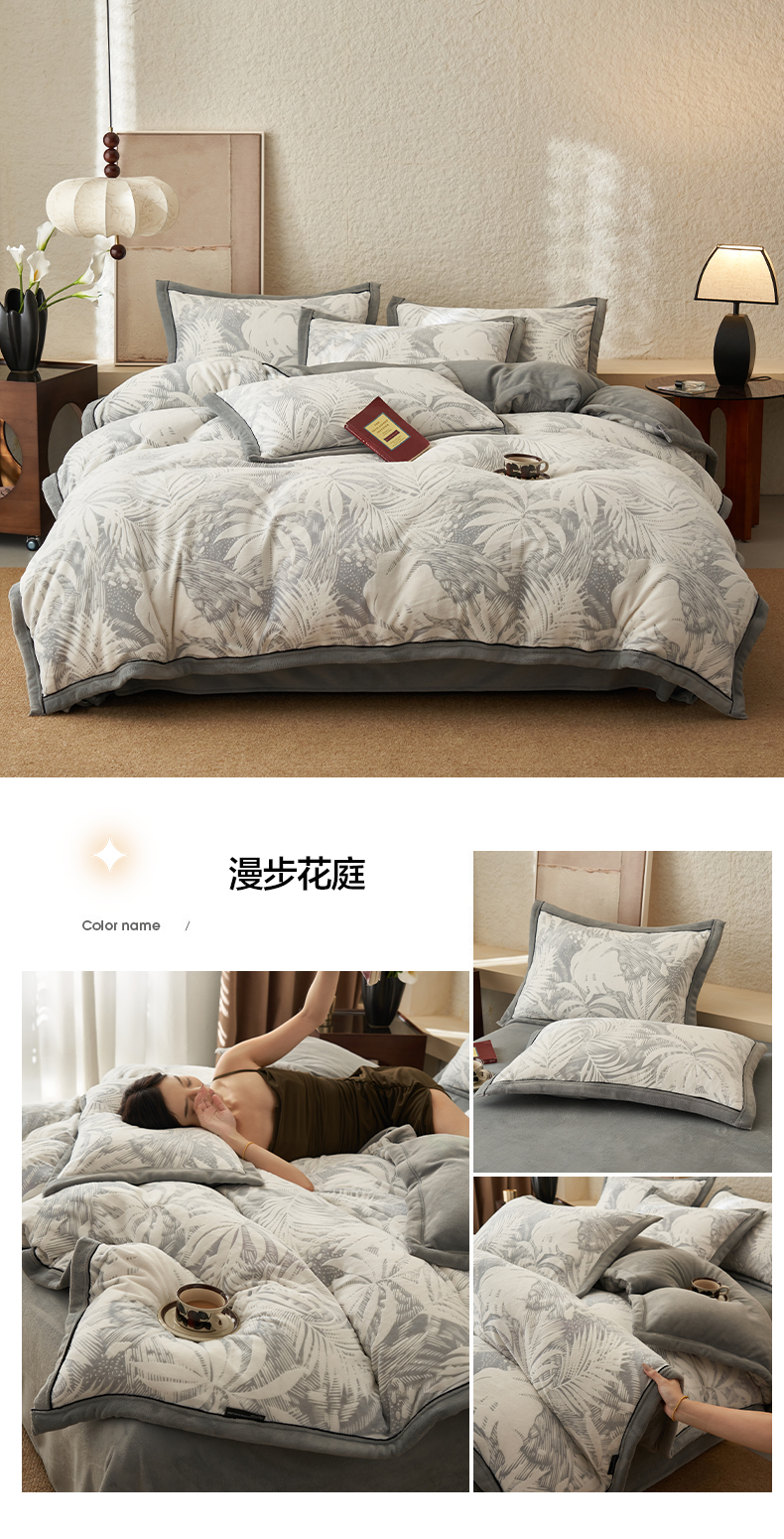 当前位置: 91家纺网 > 商品网购 > 床品套件 > 四件套 > 牛奶绒四件套 > 寐绸家纺 2025秋冬新款230g牛奶绒染色雕花四件套 雕花四件套-漫步花庭