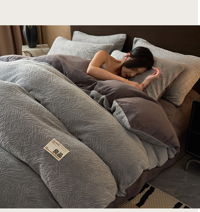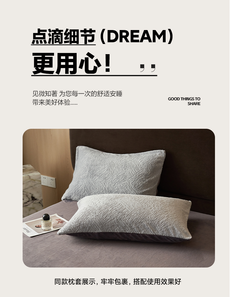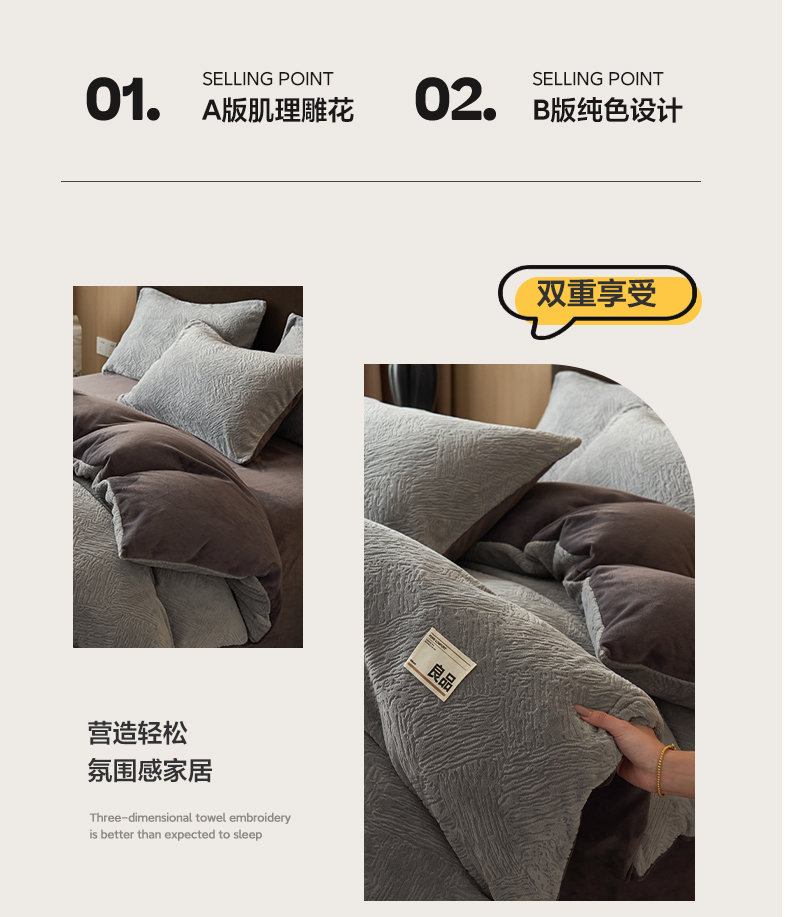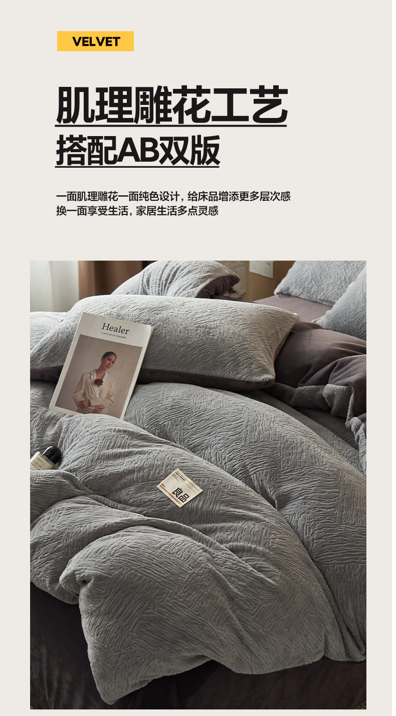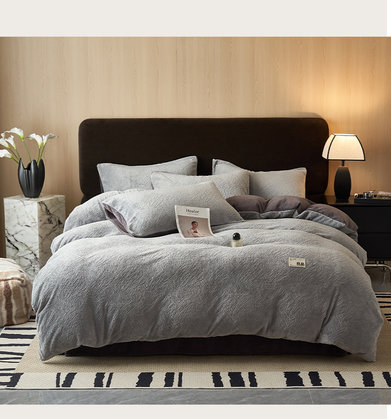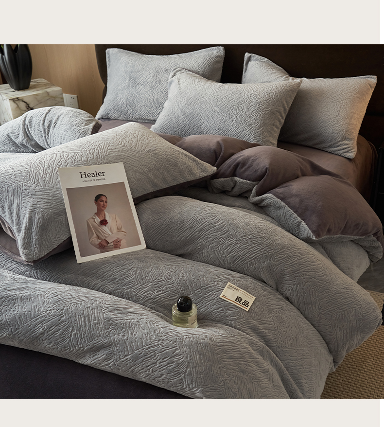 当前位置: 91家纺网 > 商品网购 > 床品套件 > 四件套 > 雕花绒四件套 > 寐绸家纺 2025秋冬新款230g牛奶绒肌理雕花四件套 肌理四件套-浅灰