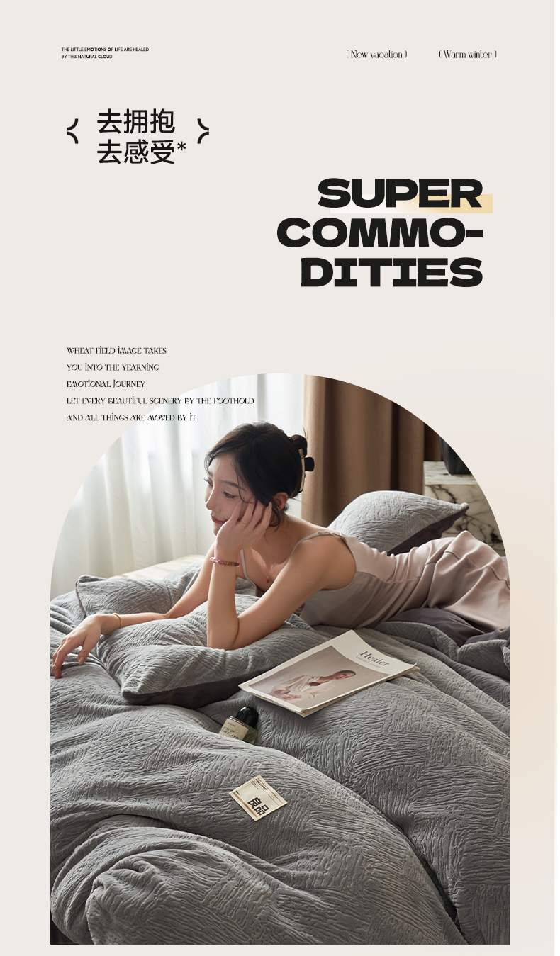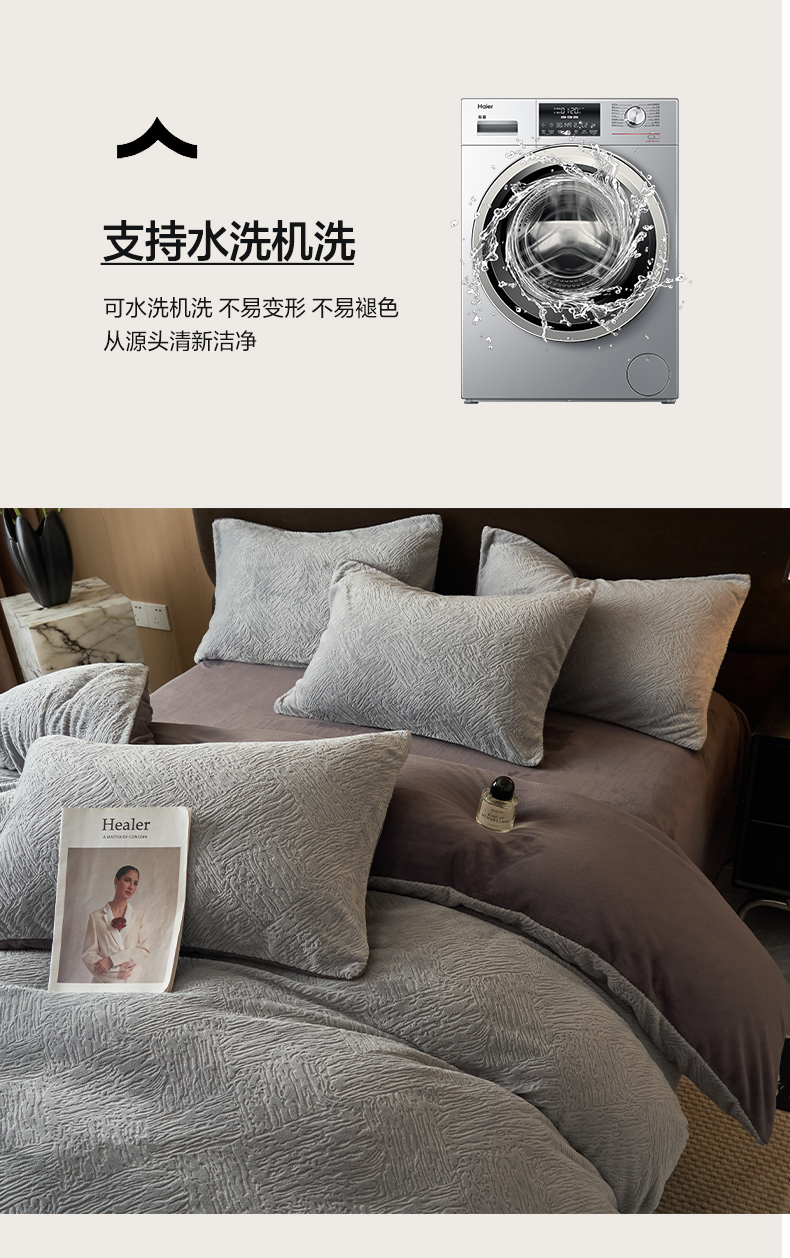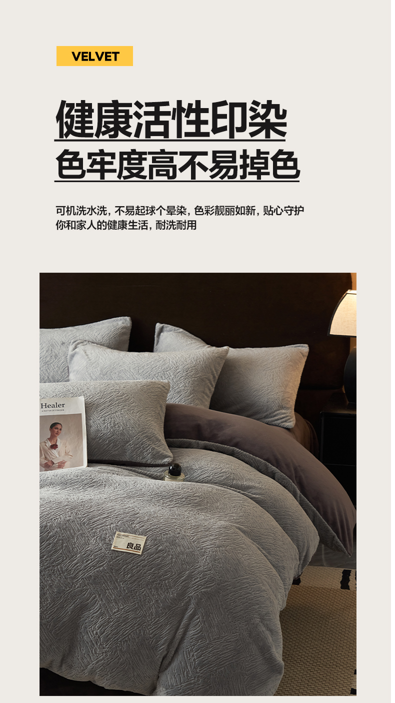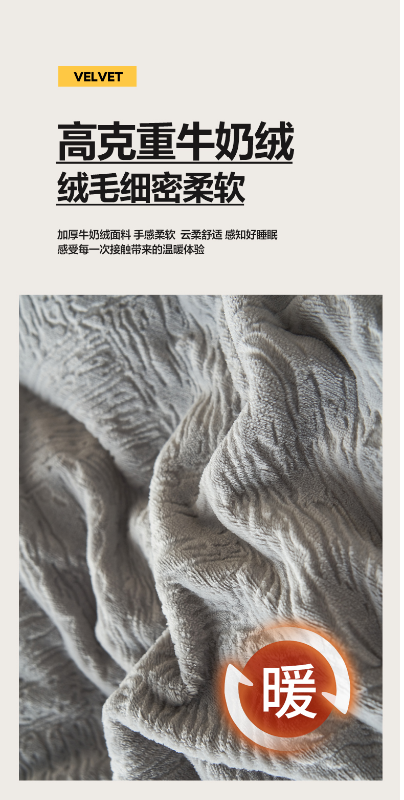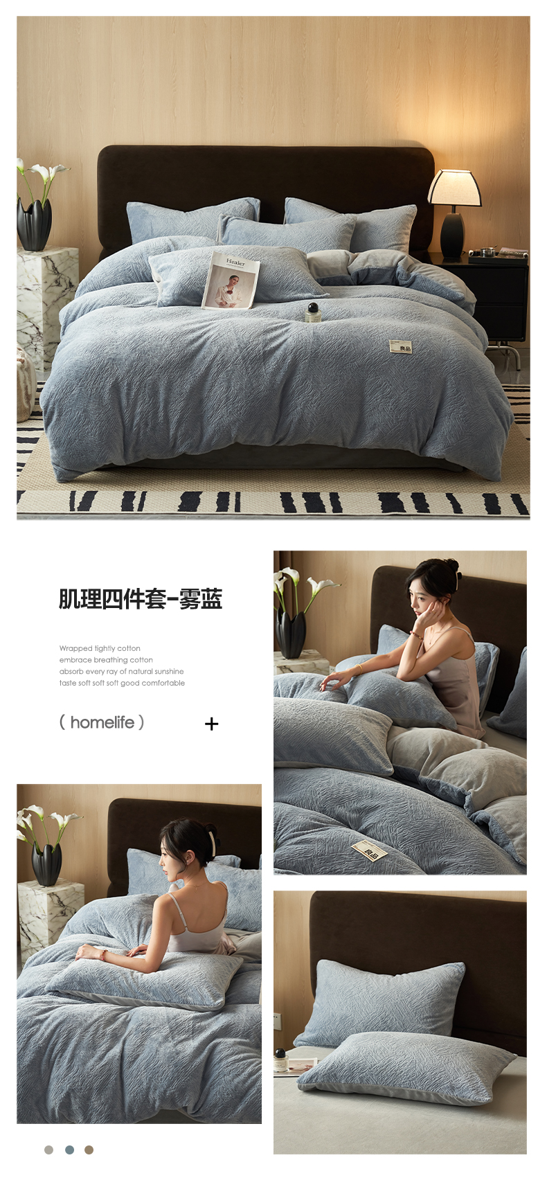 当前位置: 91家纺网 > 商品网购 > 床品套件 > 四件套 > 雕花绒四件套 > 寐绸家纺 2025秋冬新款230g牛奶绒肌理雕花四件套 肌理四件套-浅灰