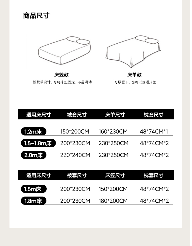 【床笠款】1.8四件套-被套200x230 | ¥105.00 |
