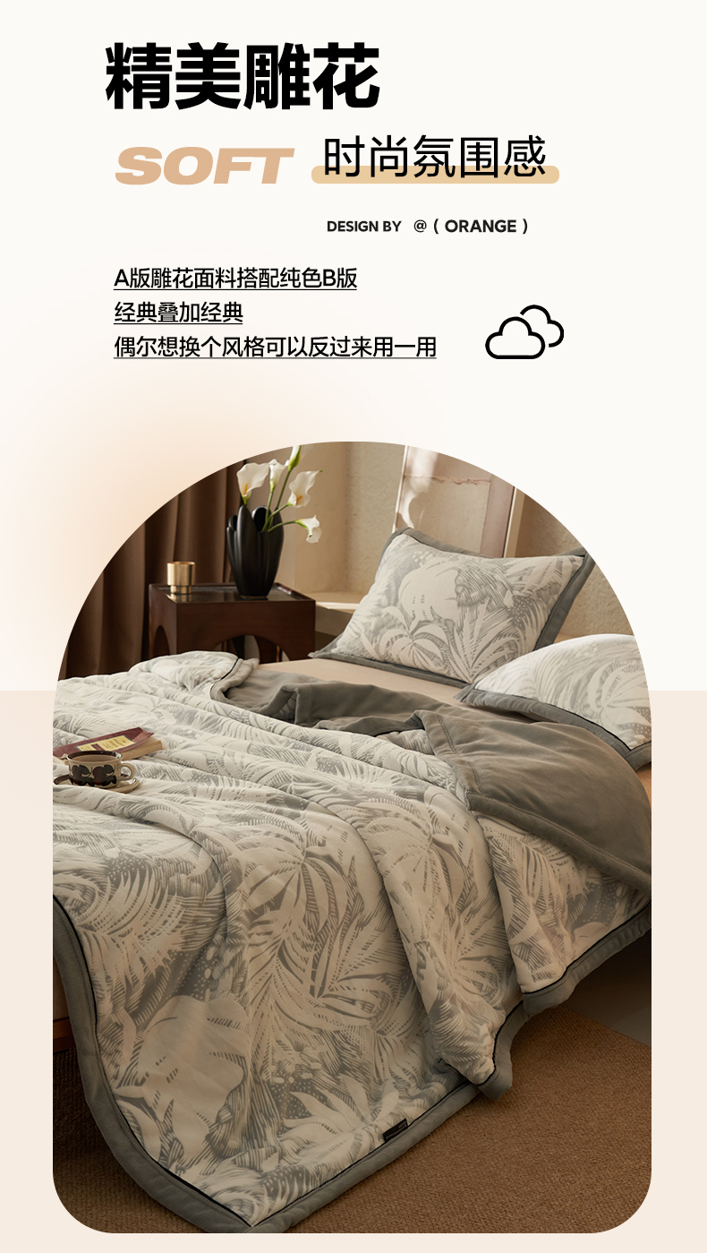当前位置: 91家纺网 > 商品网购 > 毛毯休闲毯绒毯 > 毛毯 > 寐绸家纺 2025新款230g牛奶绒染色雕花功能毛毯 雕花功能毯-漫步花庭