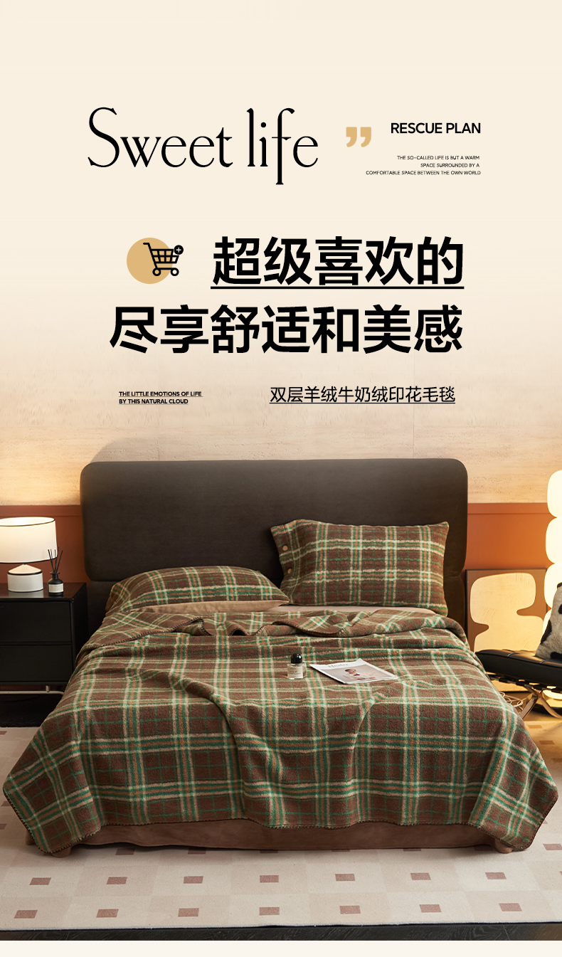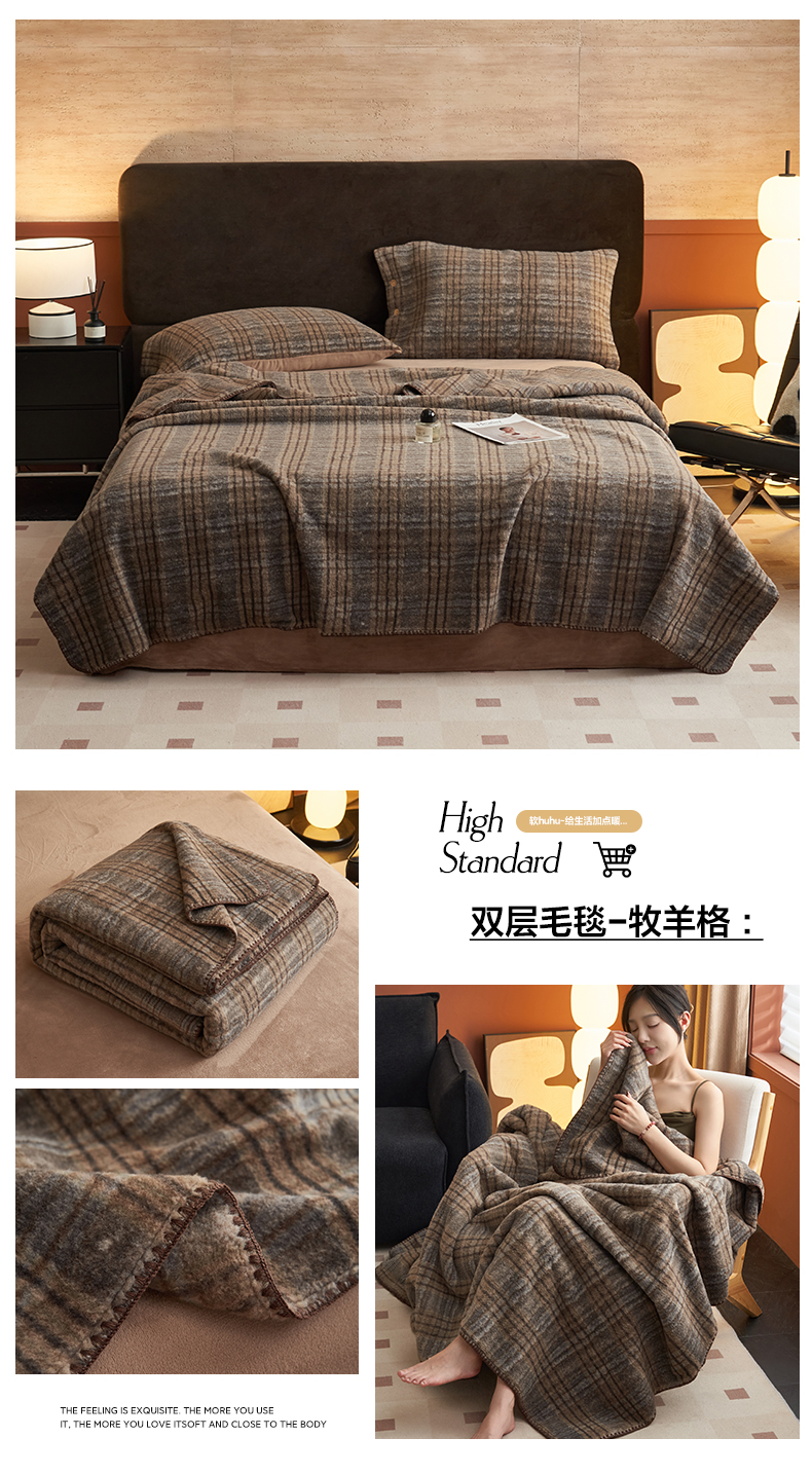 寐绸家纺 2025新款230g双层羊绒牛奶绒毛毯 双层毛毯-巴宝格