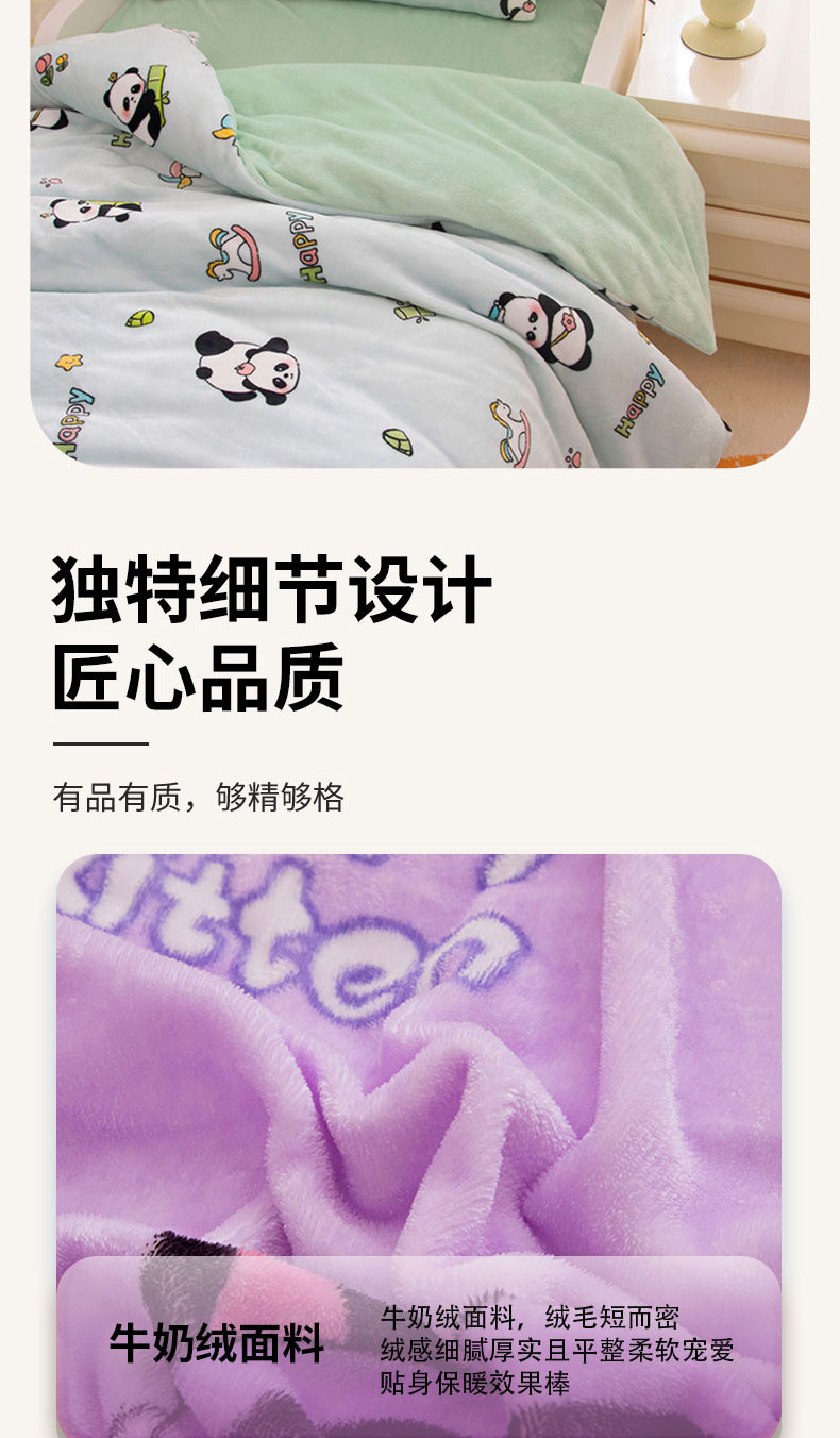 当前位置: 91家纺网 > 商品网购 > 床品套件 > 三件套 > 萌宝家纺 2025新款加厚儿童牛奶绒被套幼儿园保暖三件套 奶牛