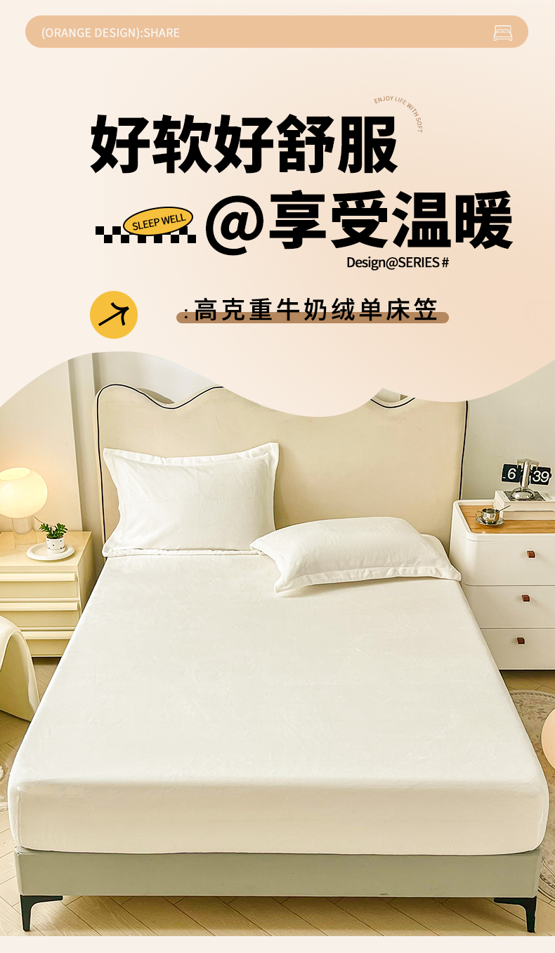 • 91家纺网 家纺一手货源 找家纺 恬澳家纺 2025新款200g高克重牛奶绒床笠单品床笠单件单床笠 暖阳-奶油白