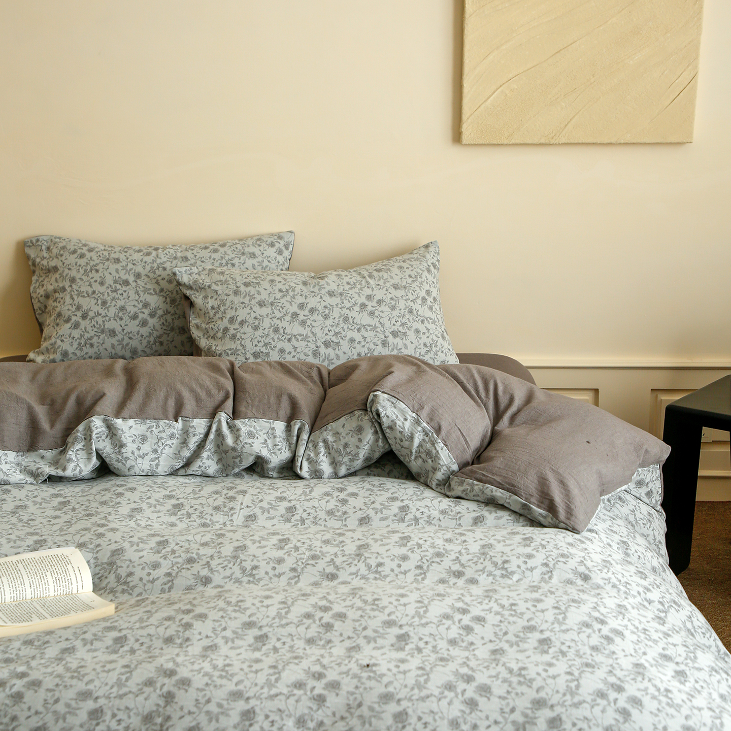 商品名称:沐白家居 2025新款色织全棉提花四件套 苏黎玫瑰-浅银灰