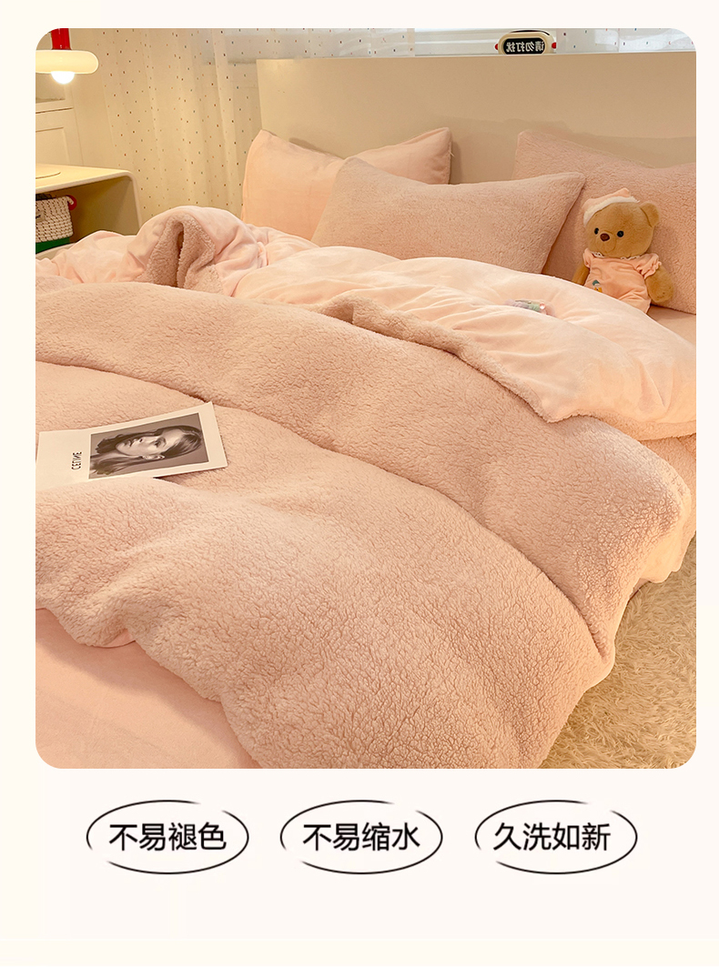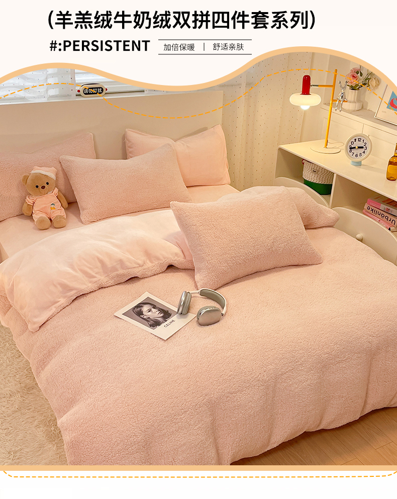 当前位置: 91家纺网 > 商品网购 > 床品套件 > 四件套 > 牛奶绒四件套 > 逸尚阁 2025新款羊羔绒牛奶绒双拼四件套 桃子粉