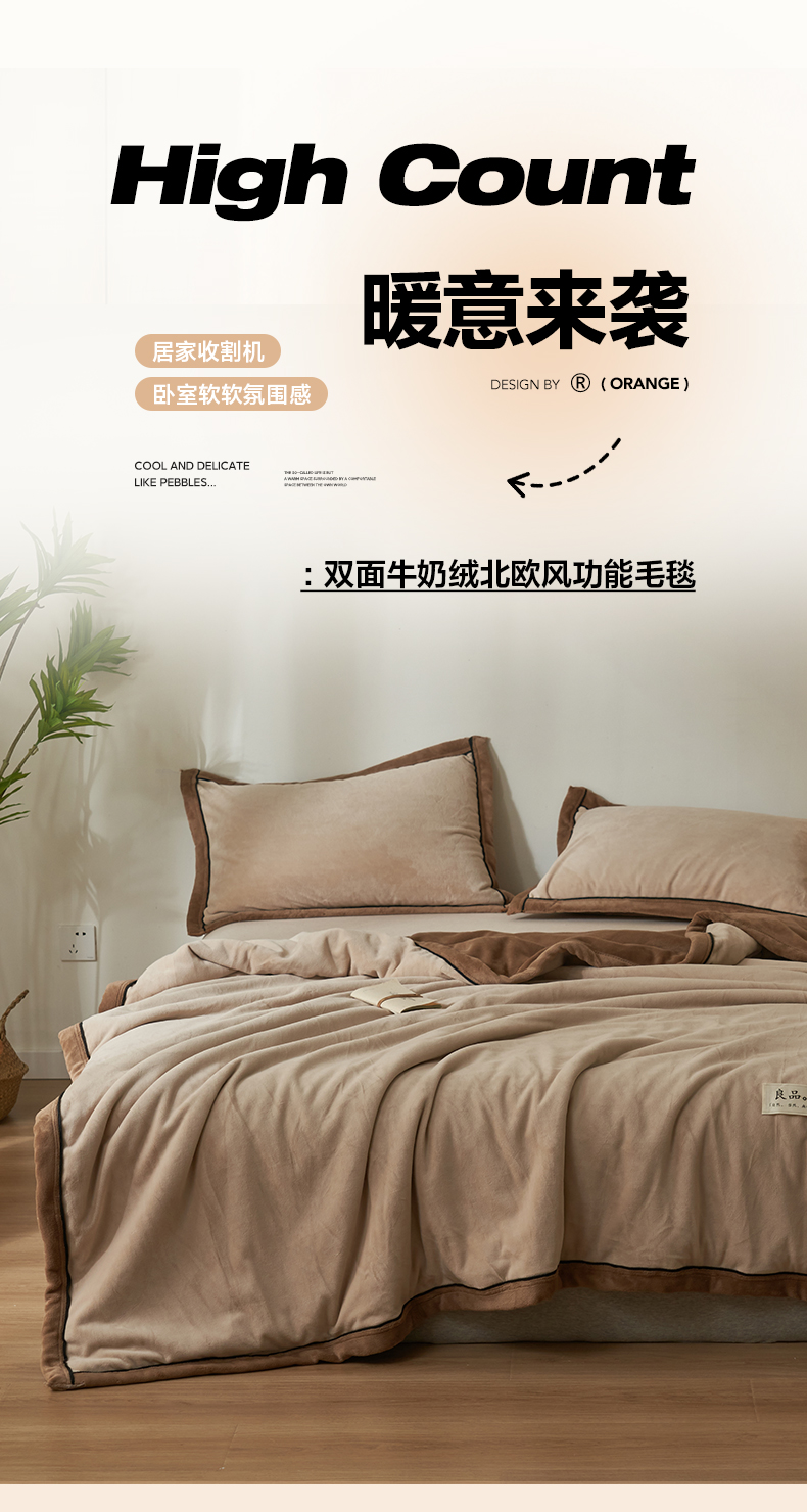 当前位置: 91家纺网 > 商品网购 > 毛毯休闲毯绒毯 > 毛毯 > 寐绸家纺 2025新款双面牛奶绒北欧风功能毛毯 米驼+奶茶咖