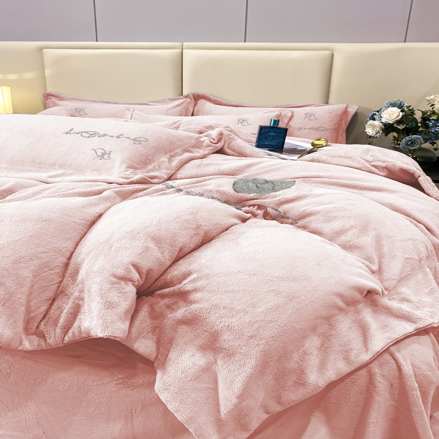 商品名称:玖玖爱家纺 2025新款高克重婴儿绒刺绣四件套-绮梦 绮梦-新绿