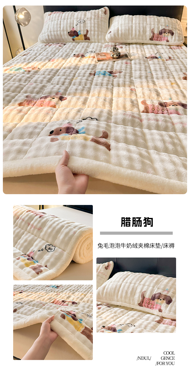 当前位置: 91家纺网 > 商品网购 > 床垫/床褥 > 普通床垫 > 梵朴 2025新款牛奶绒泡泡兔毛绒床垫学生宿舍床褥子床护垫(大床款印花系列)-场景二 蕾丝蝴蝶结紫