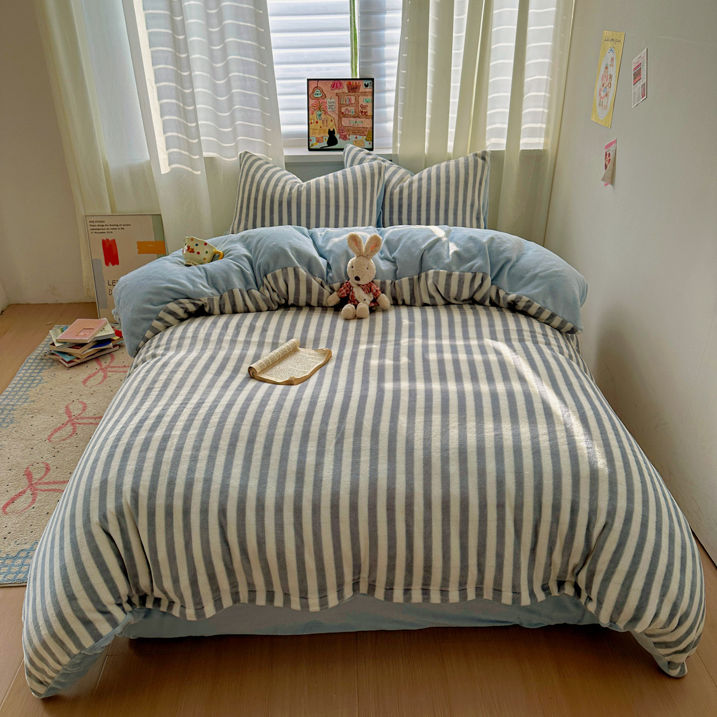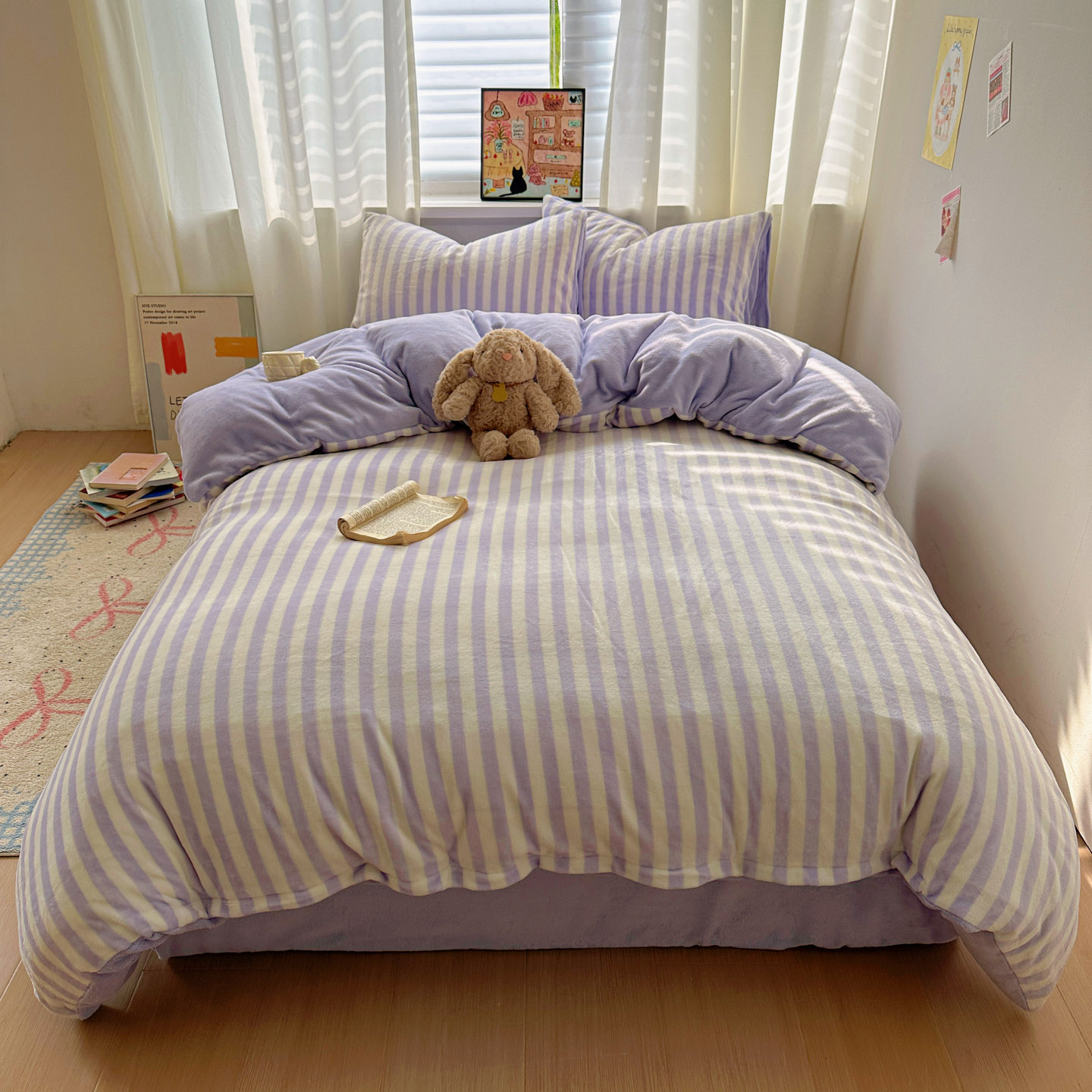 当前位置: 91家纺网 > 商品网购 > 床品套件 > 四件套 > 牛奶绒四件套 > 繁花家居 2025新款条纹系列牛奶绒四件套 蜜豆粉条
