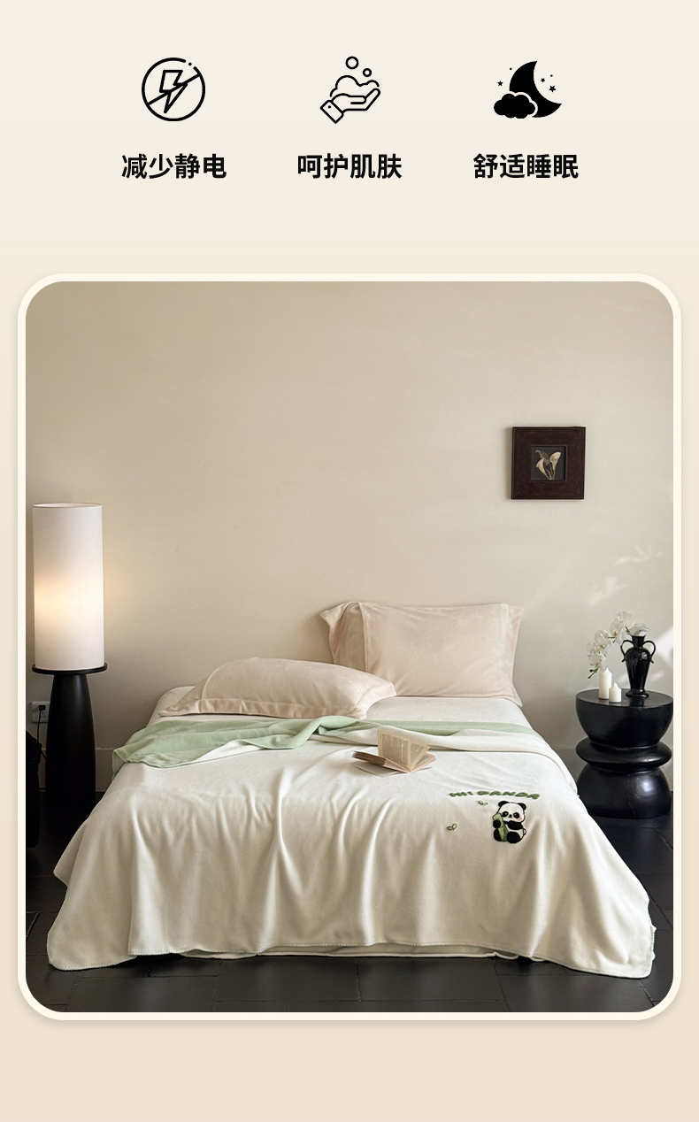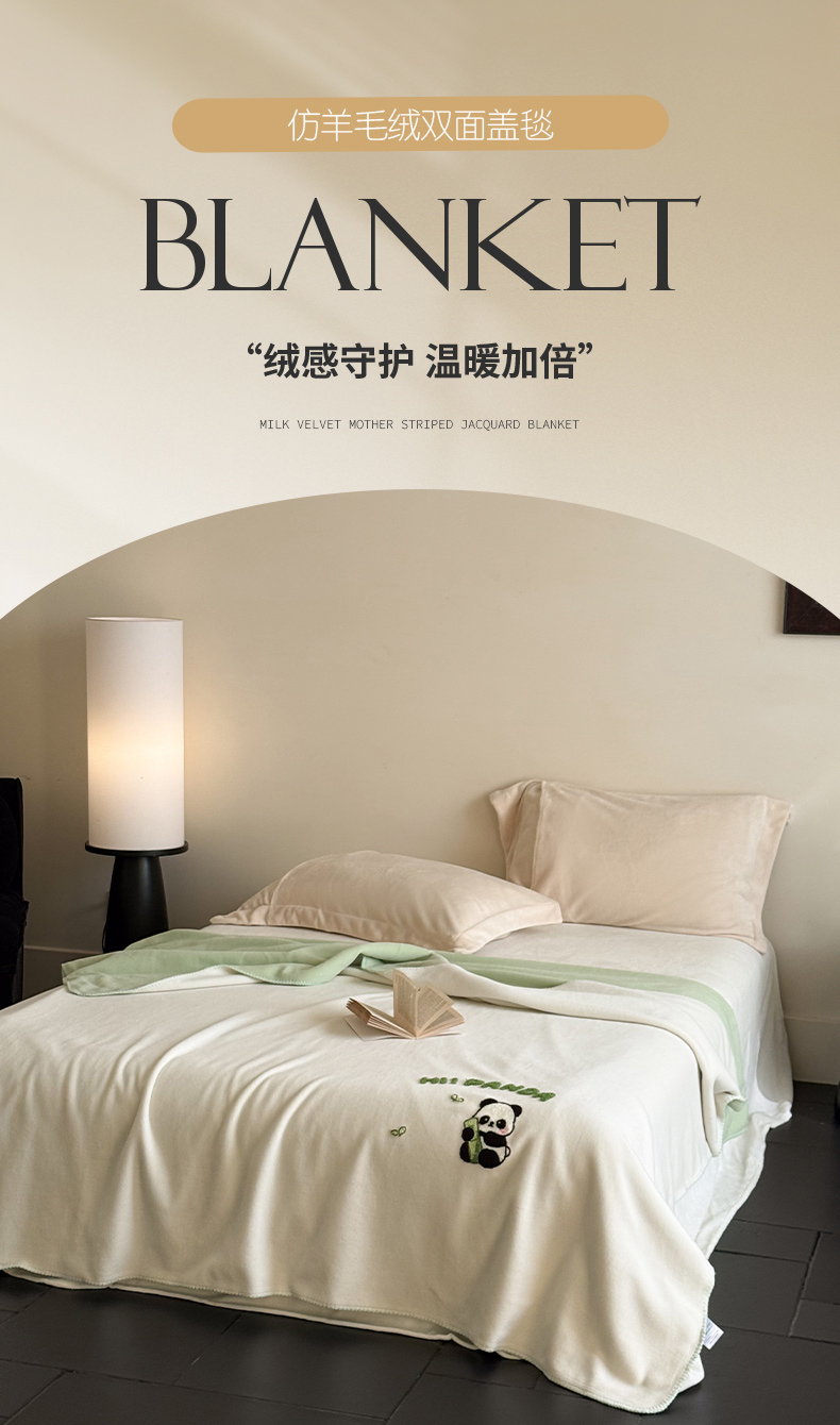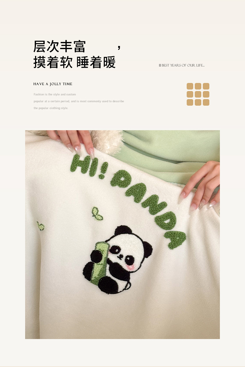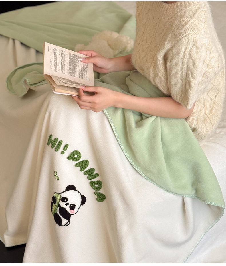 商品名称:云栖家居 2025新品双层加厚高克重消光沙发毯仿羊绒纯色刺绣盖毛毯毯子 小熊猫-绿