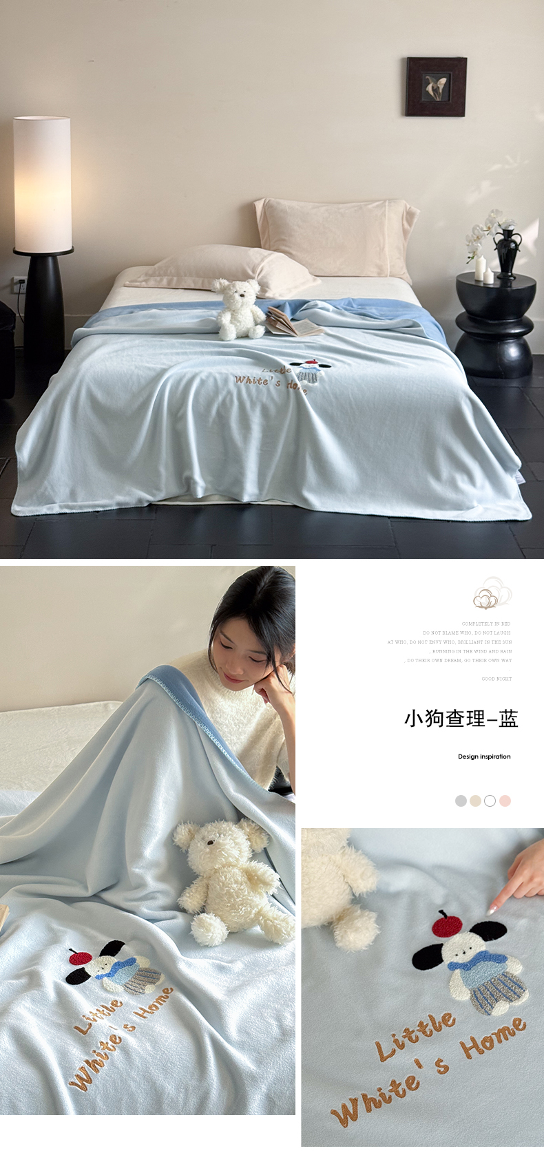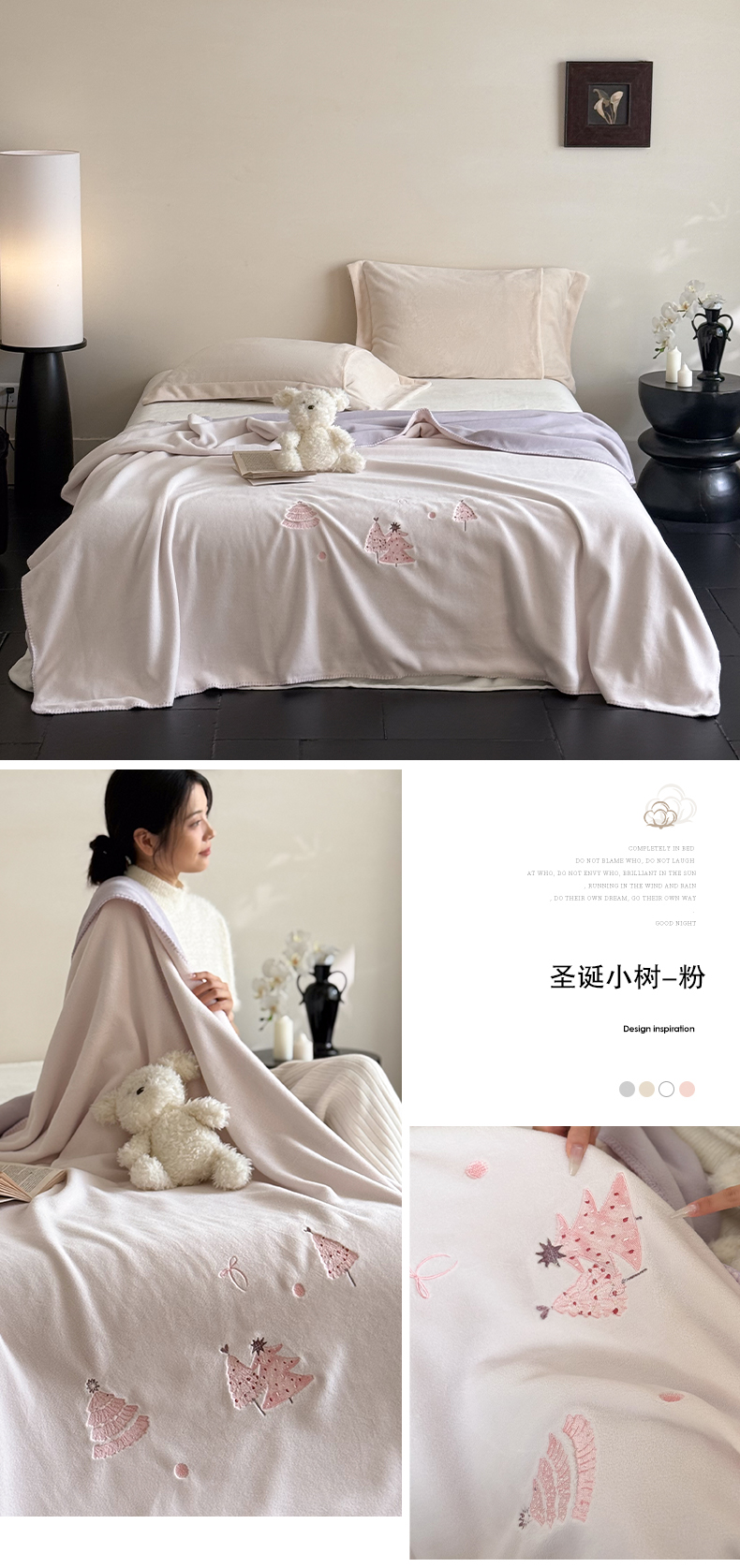 (总)云栖家居 2025新品双层加厚高克重消光沙发毯仿羊绒纯色刺绣盖毛毯毯子,山茶-粉,山茶-蓝,圣诞小树-粉,圣诞小树-绿,甜心蝴蝶结-紫,小狗查理-蓝,小熊猫-绿