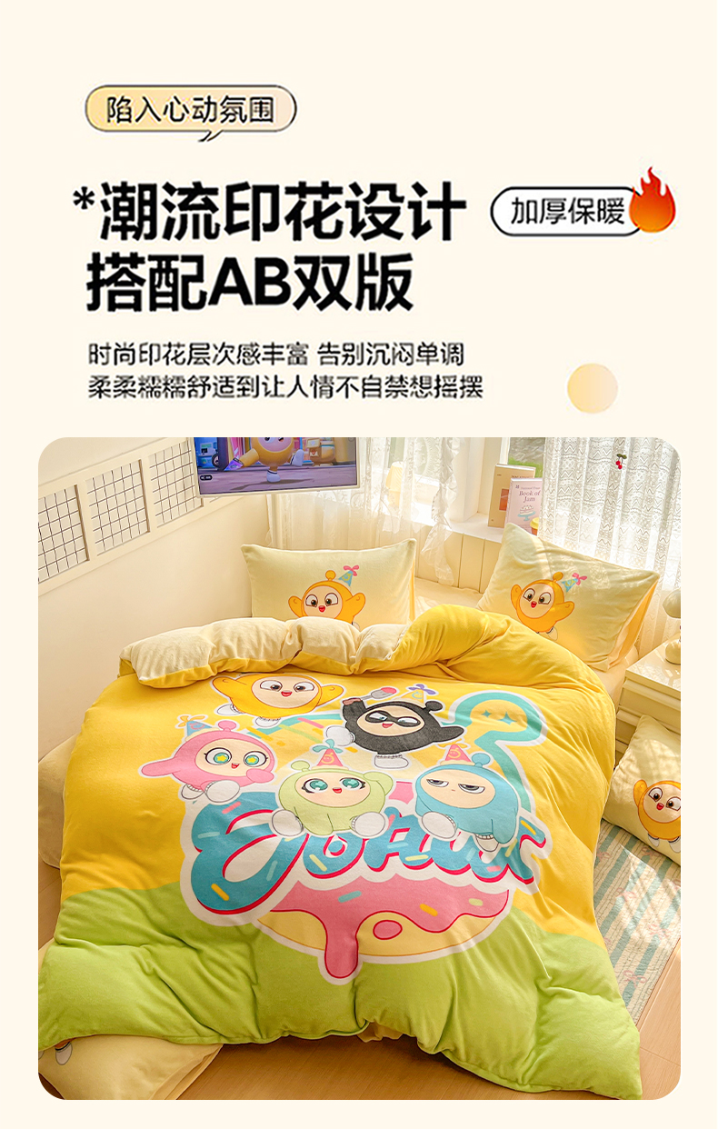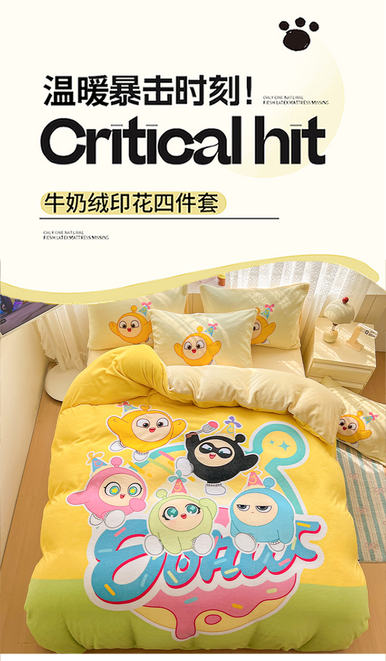 当前位置: 91家纺网 > 商品网购 > 床品套件 > 四件套 > 牛奶绒四件套 > 浩诚 2025新款高克重牛奶绒大版卡通四件套 蛋仔派对