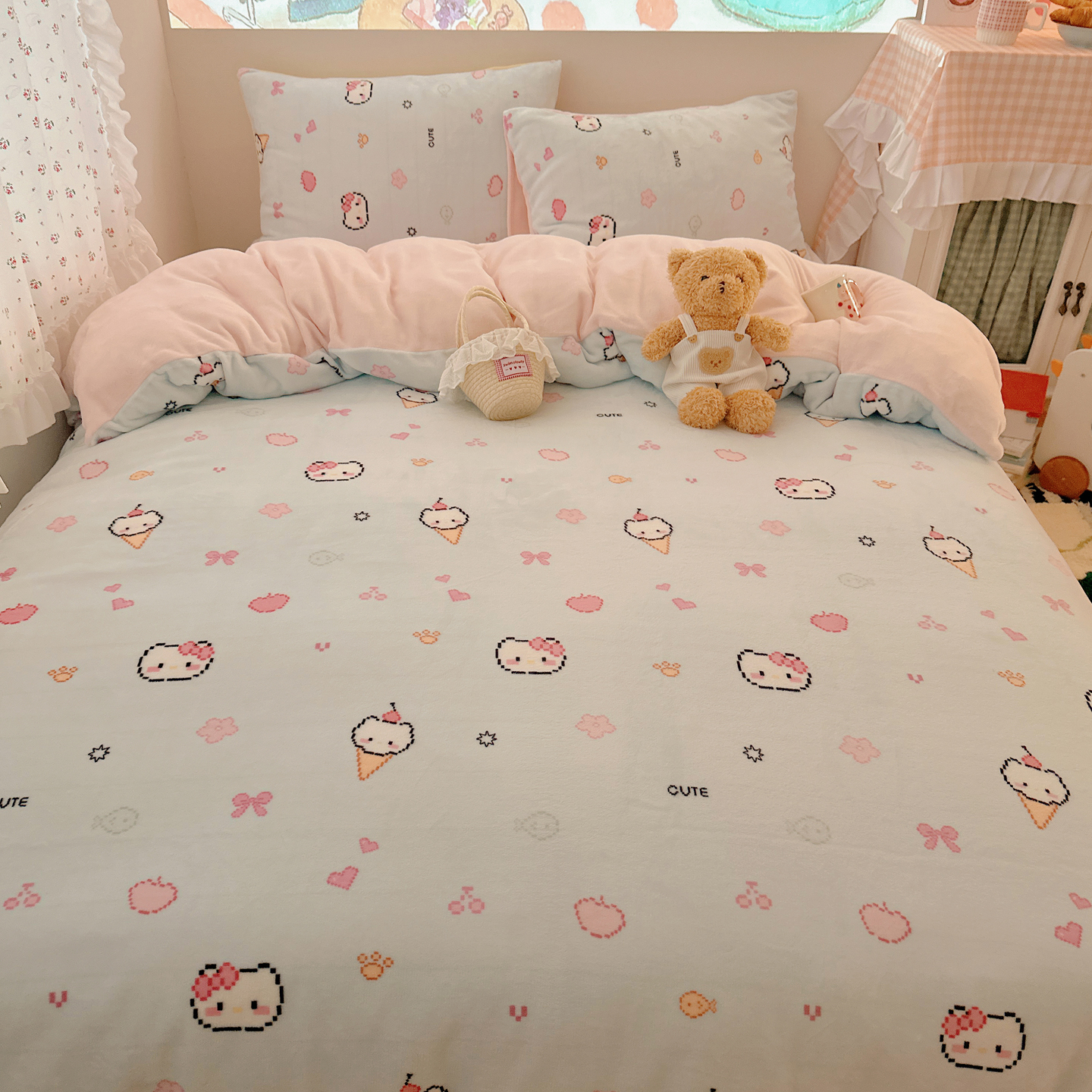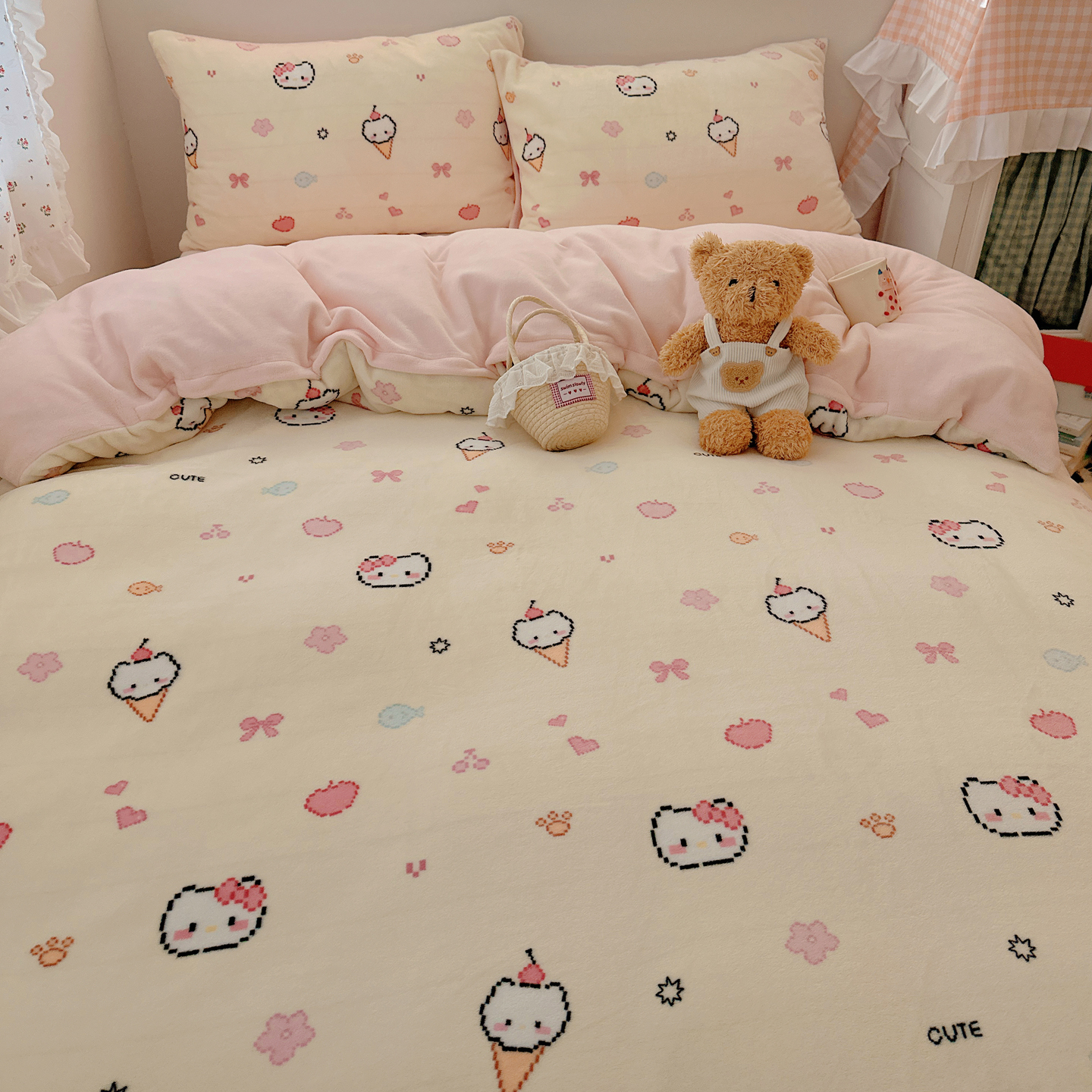 (总)桃喜 2026新款全棉混搭卡通印花学生三件套四件套,费尔岛蝴蝶结小狗,费尔岛小熊,可爱动物团,可爱小兔子,星星猫咪