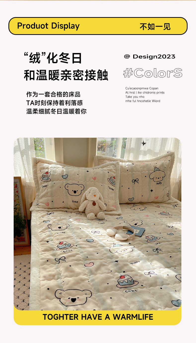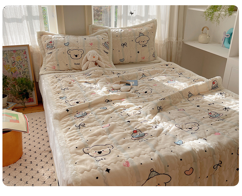 (总)红嘴企鹅 2025新款花边加厚牛奶绒单品床盖单件床盖三件套,波点狗,波点猫,大力,蛋糕狗,点心,蝶梦,动物乐园,蝴蝶狗狗,可爱比熊,萌萌熊,梦幻小熊,摩卡熊,奶油狗,平安猫,棋盘狗,少女猫咪,生日Party,圣诞老人,圣诞猫,淘气狗,小星甜点,星星乐园,星云小熊,羞羞猫,字母熊