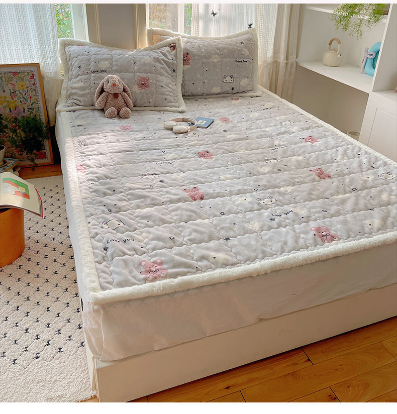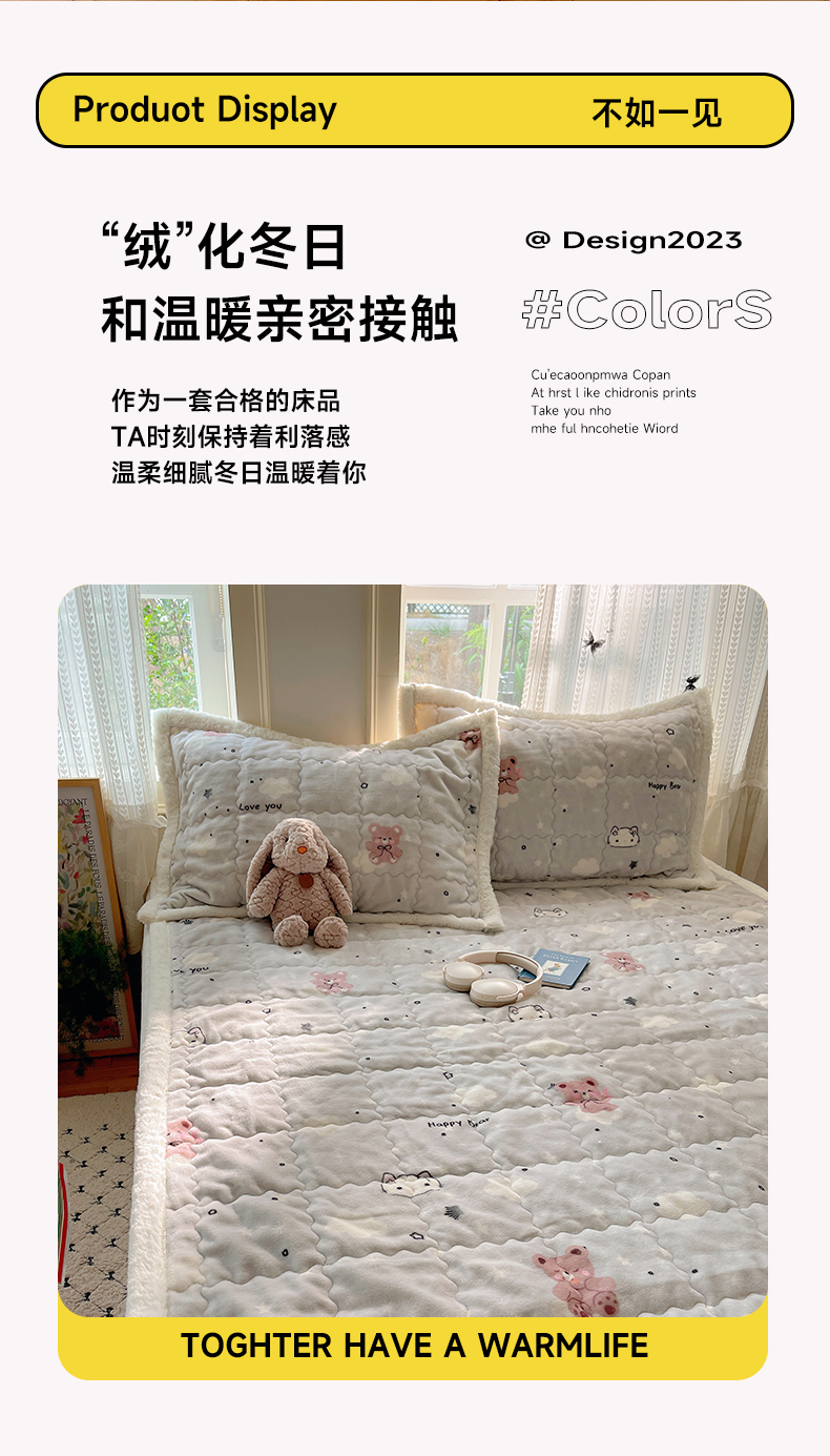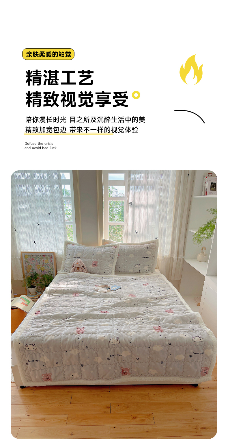 (总)红嘴企鹅 2025新款花边加厚牛奶绒单品床盖单件床盖三件套,波点狗,波点猫,大力,蛋糕狗,点心,蝶梦,动物乐园,蝴蝶狗狗,可爱比熊,萌萌熊,梦幻小熊,摩卡熊,奶油狗,平安猫,棋盘狗,少女猫咪,生日Party,圣诞老人,圣诞猫,淘气狗,小星甜点,星星乐园,星云小熊,羞羞猫,字母熊