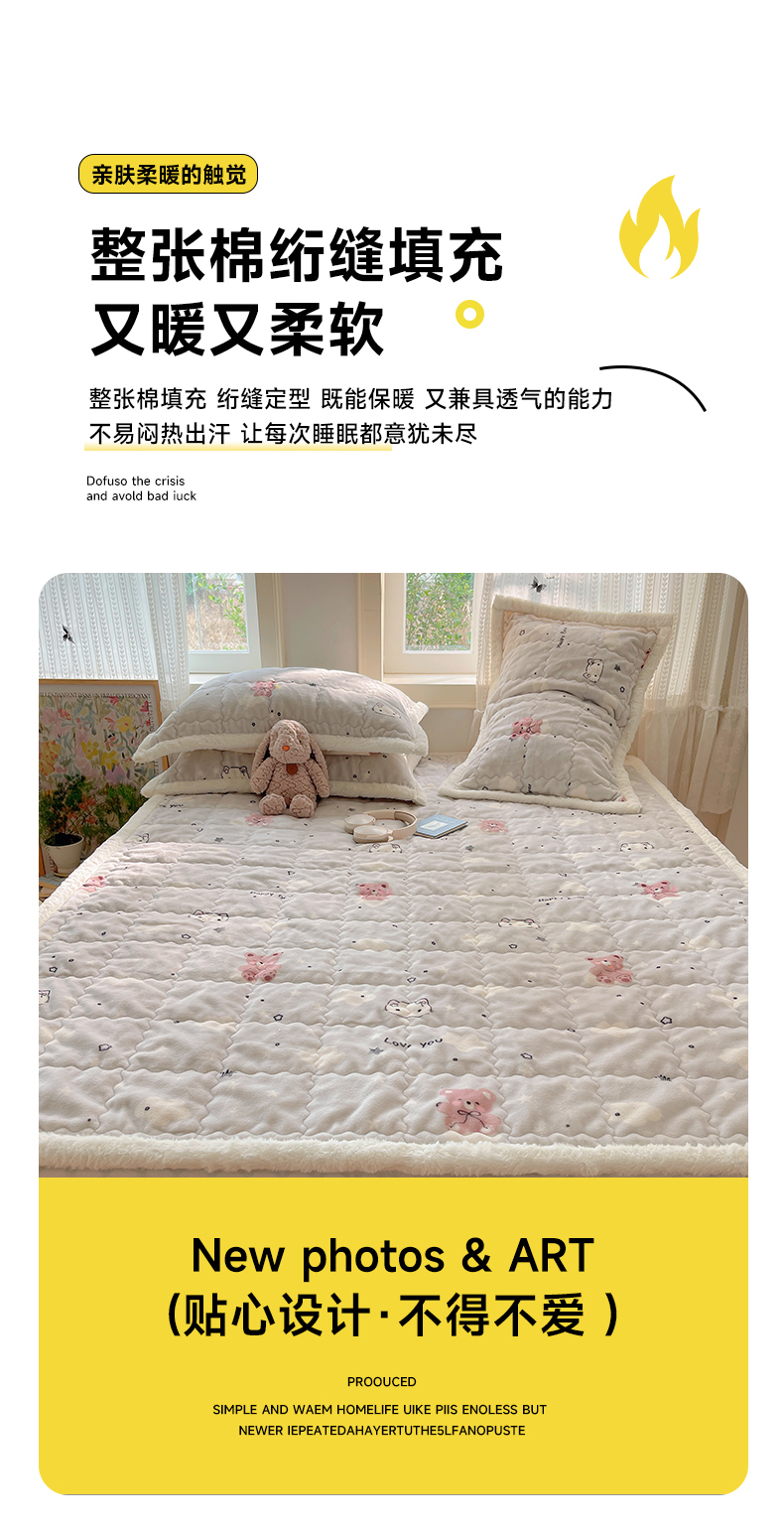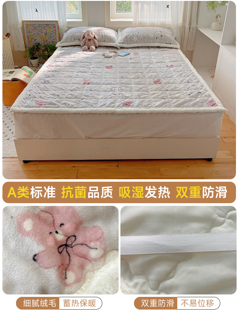 商品名称:红嘴企鹅 2025新款高克重牛奶绒印花床护垫床褥 星云小熊
