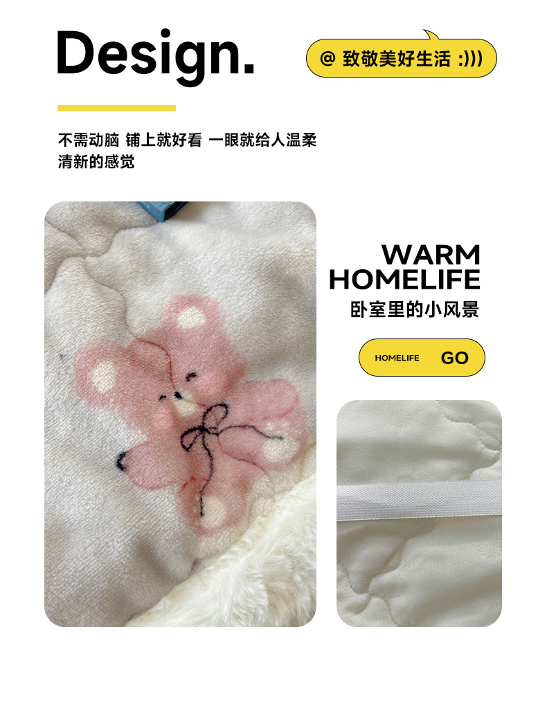 红嘴企鹅 2025新款高克重牛奶绒印花床护垫床褥 星云小熊